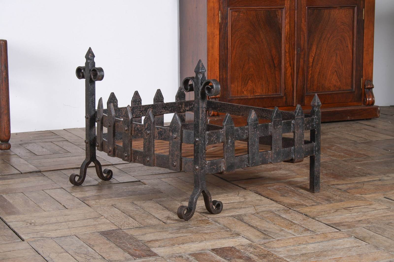 A Large Reclaimed Wrought Iron Forged Fireplace Basket Blacksmith Made