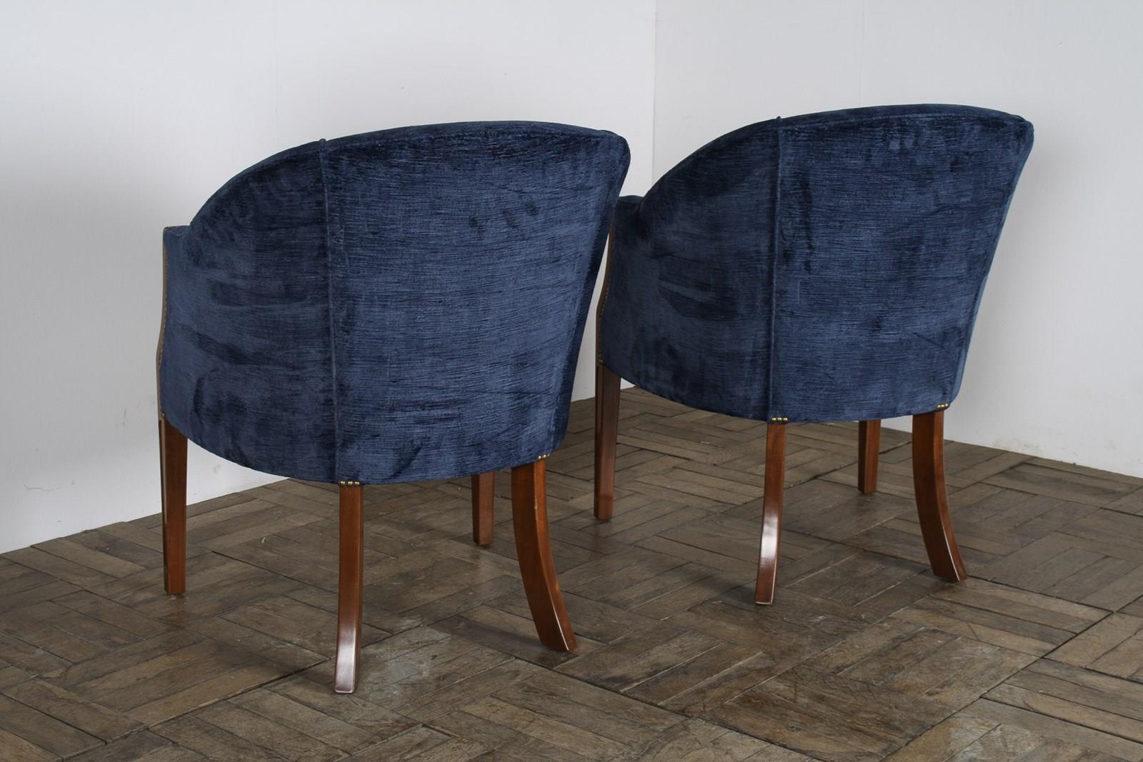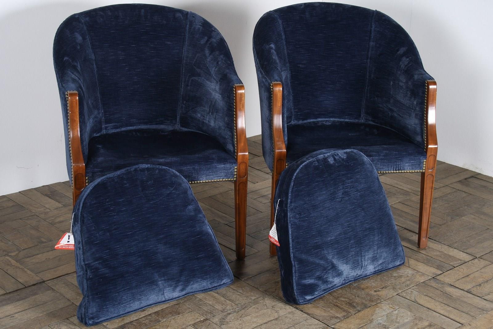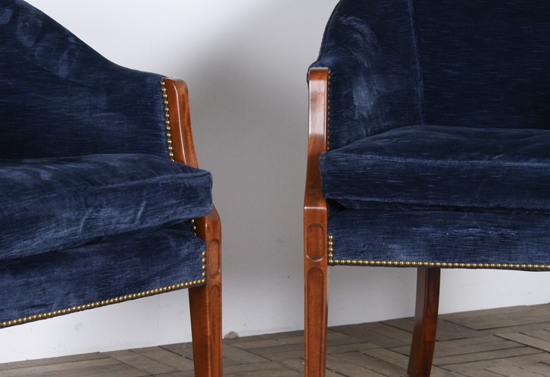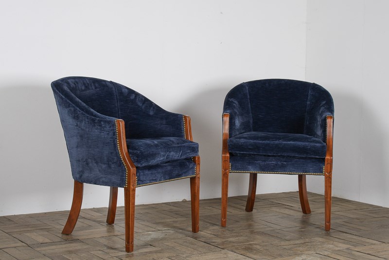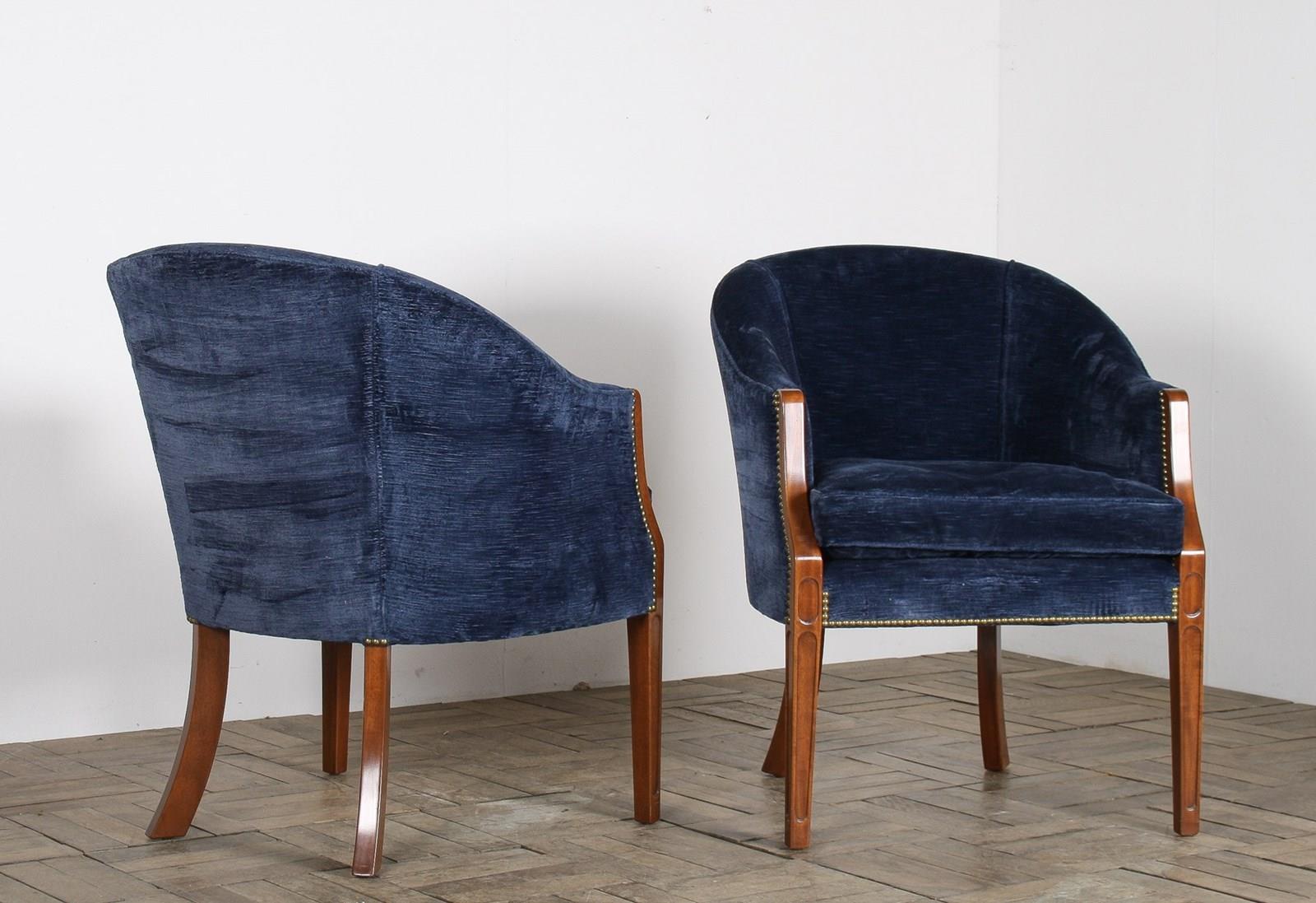 A Pair Of Arthur Brett Tub Chairs In Navy Blue 1980S – Fine English Furniture