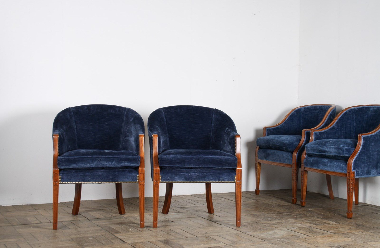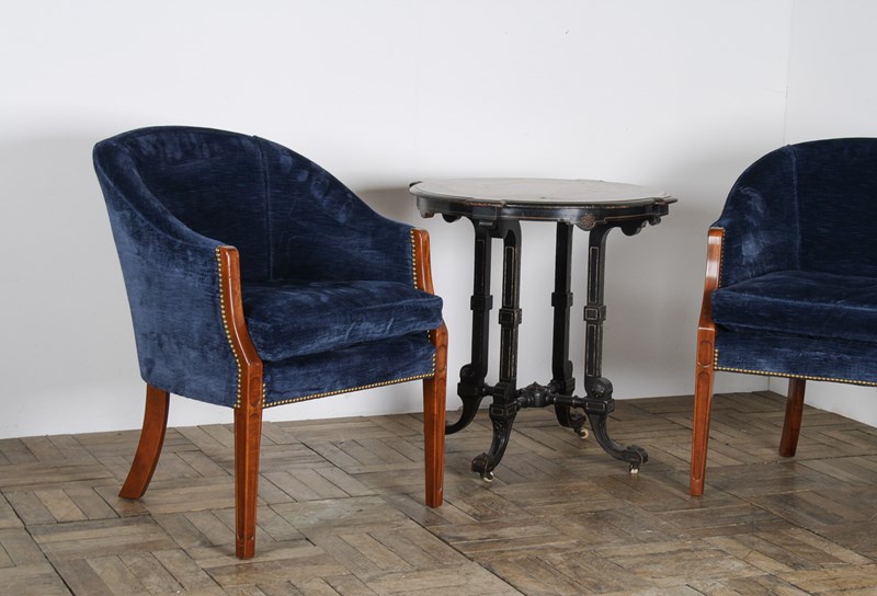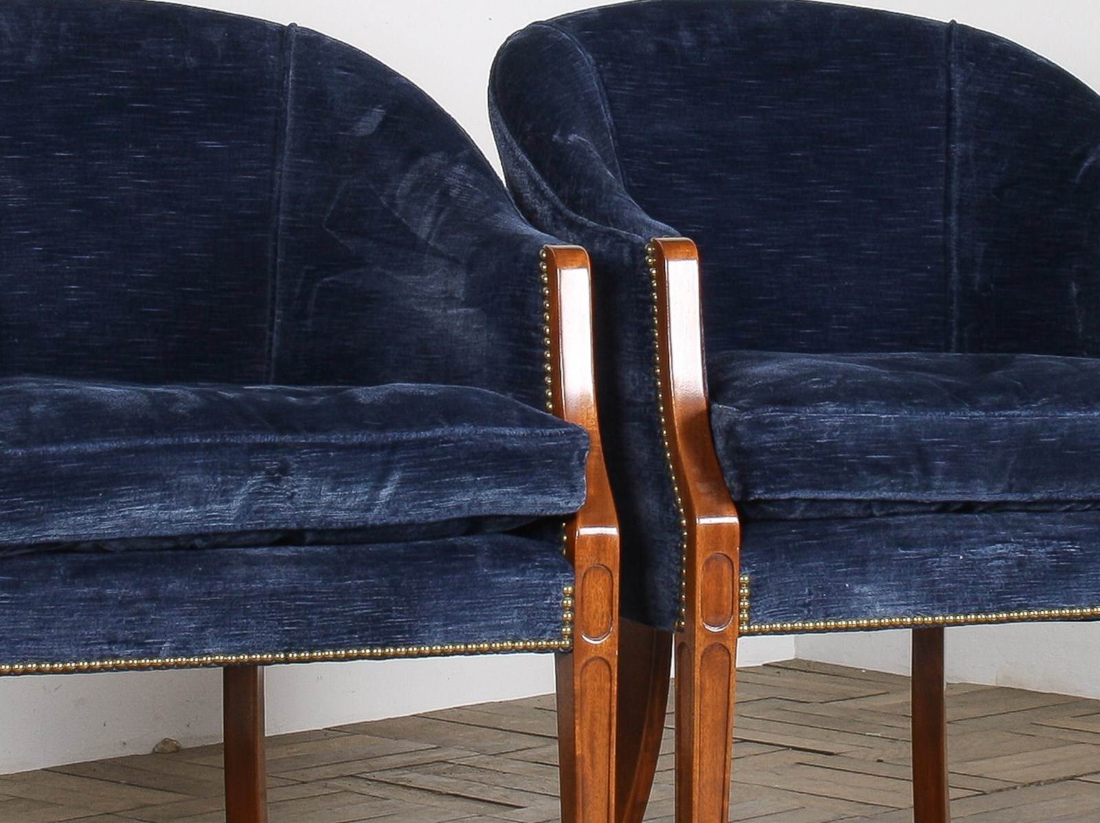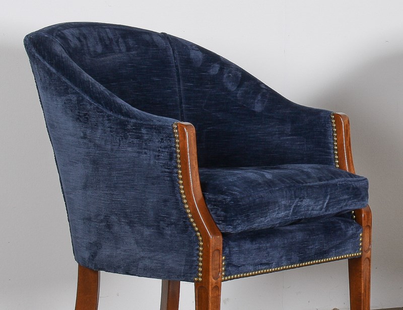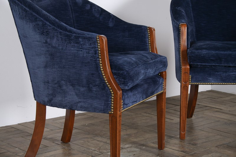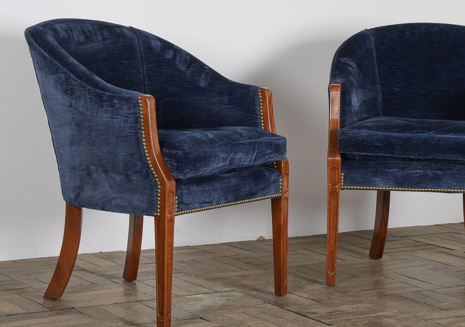 A Pair Of Arthur Brett Tub Chairs In Navy Blue 1980S – Fine English Furniture