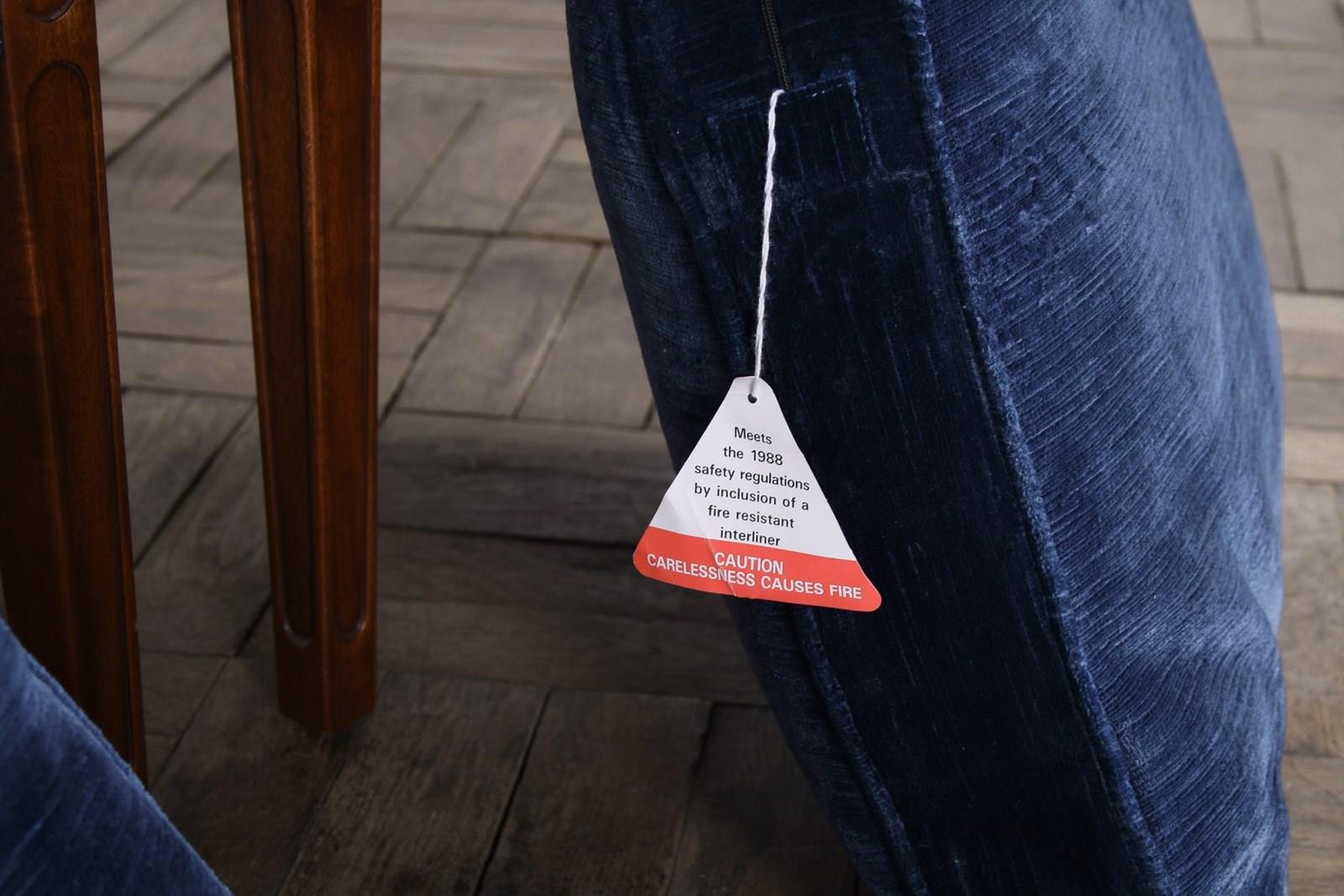 Structurally sound with minor age-appropriate wear only. Original navy-blue upholstery retains excellent pile and is in remarkable condition.