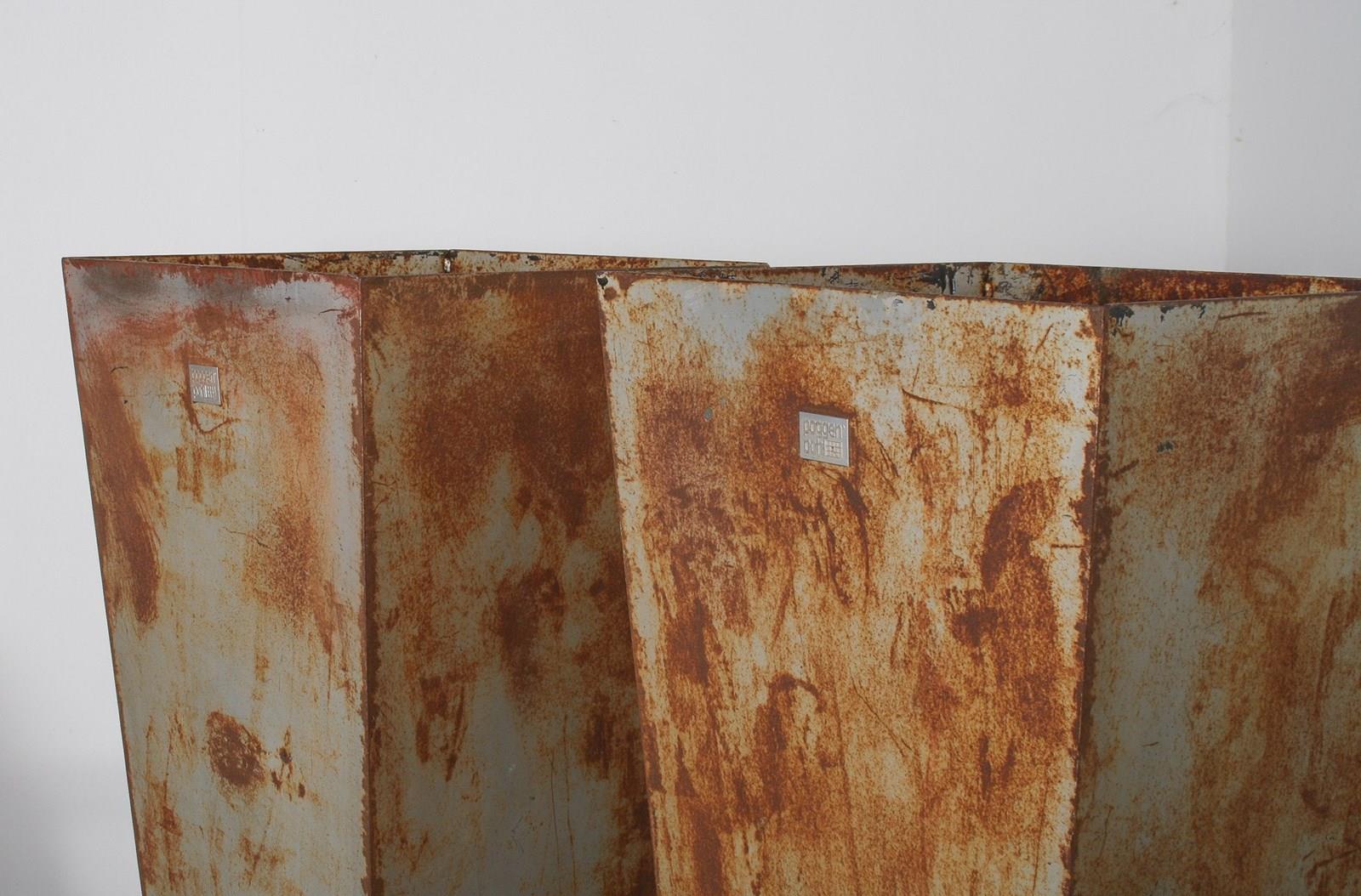 These plant stands are in excellent sound condition, showcasing their authentic industrial charm. The rusted patina and paint add character and a sense of history, making them perfect for those who appreciate the beauty of aged materials.