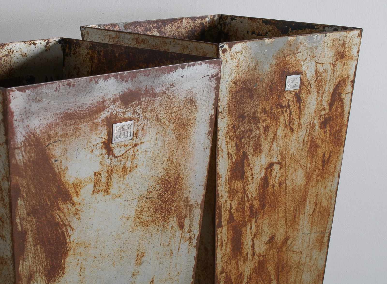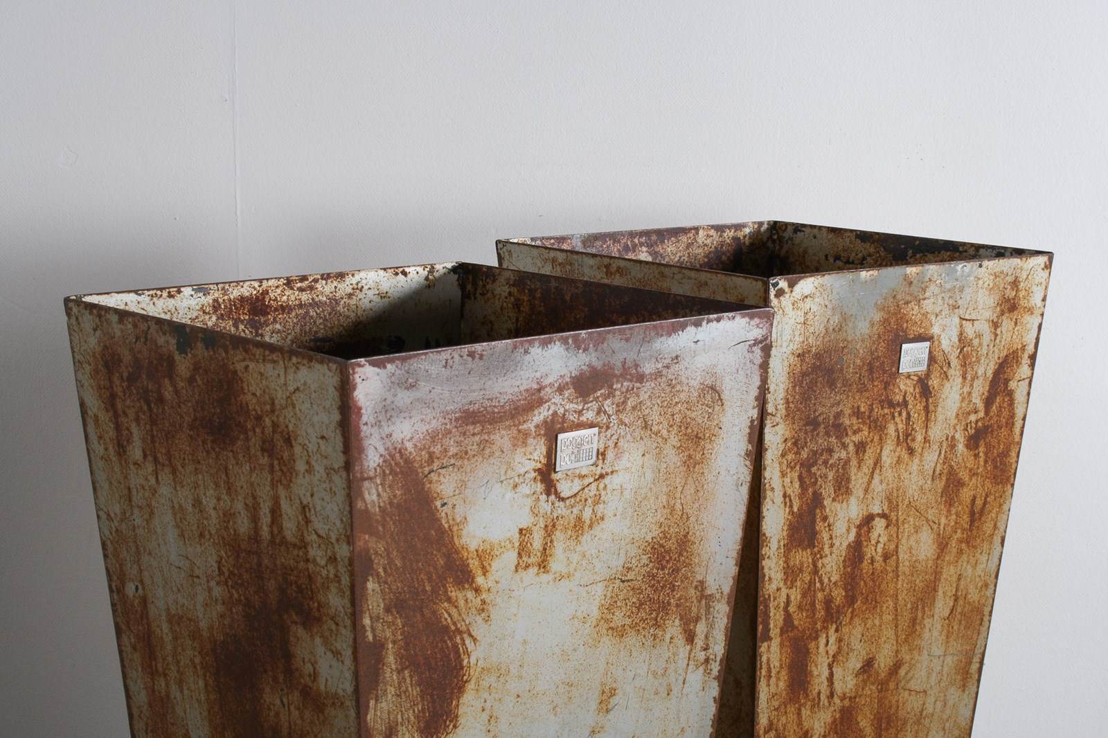 A Pair Of Brutalist Industrial Metal Plant Stands By Poggen Pohl