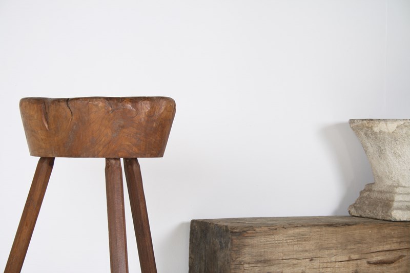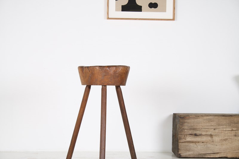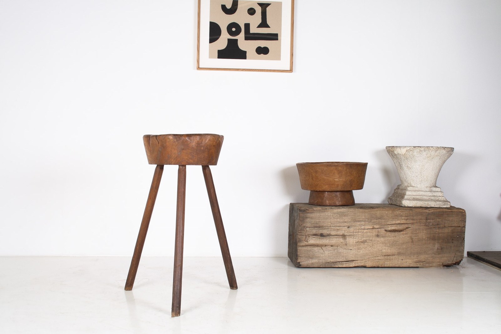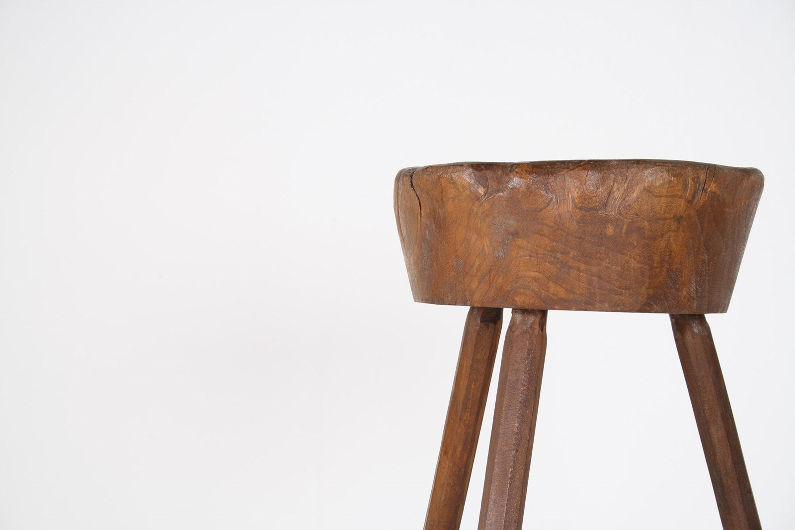 This remarkable Primitive Elm Side Table showcases a wonderful patina and a rich tone of wood, developed over years of use. Originally crafted as a chopping block, it has gracefully transitioned into a stunning interior decor item. Its unusual height of 82 cm (32 inches) makes it perfect for showcasing plants or displaying sculptures, while its sculptural form allows it to stand out as a standalone piece, adding texture and character to any room.