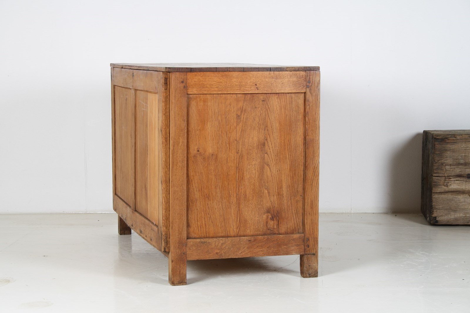 An antique oak sideboard chest of drawers, a beautifully crafted piece of furniture, made from solid oak wood that showcases a rich, warm finish. Solid oak construction, known for its durability and attractive grain patterns.