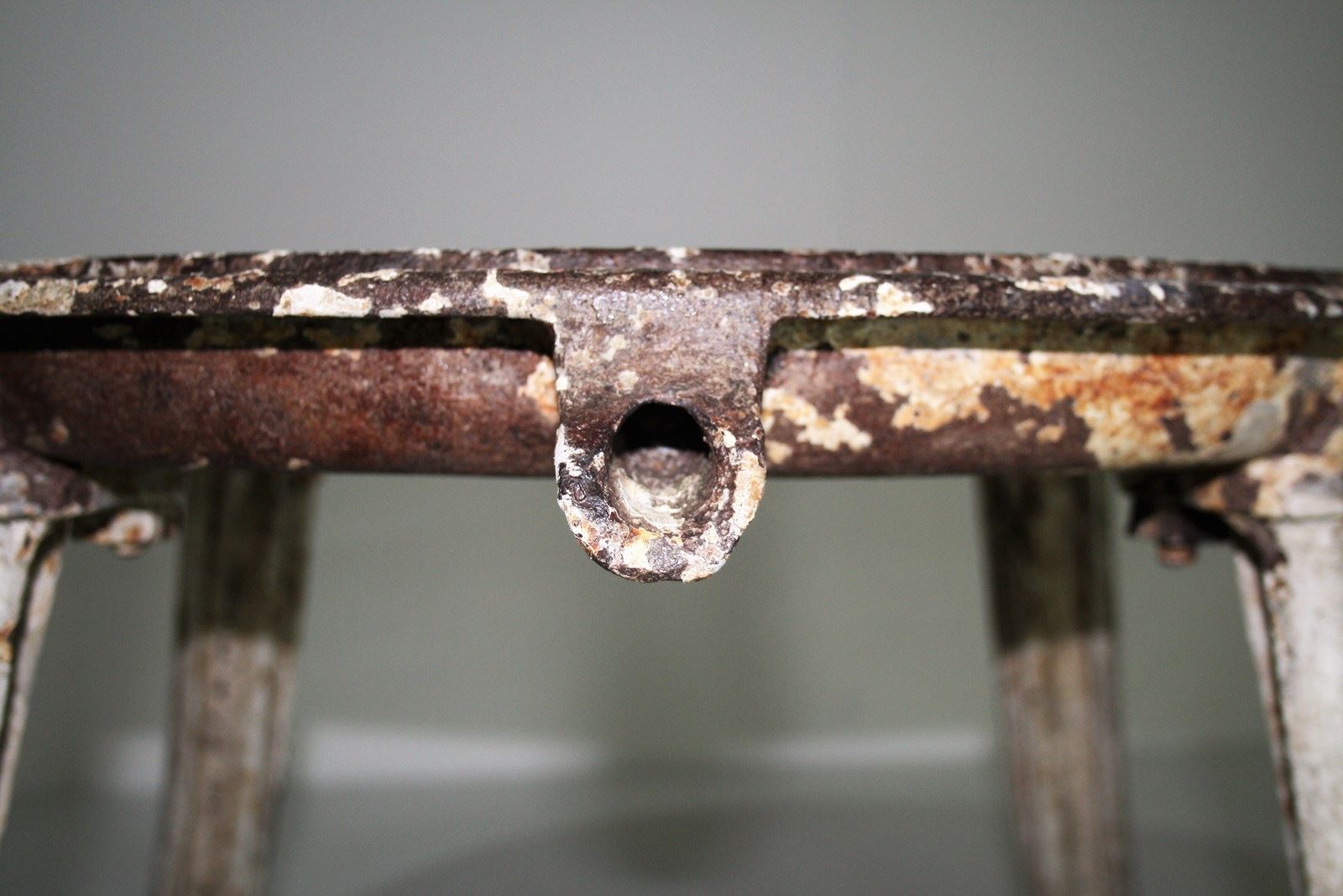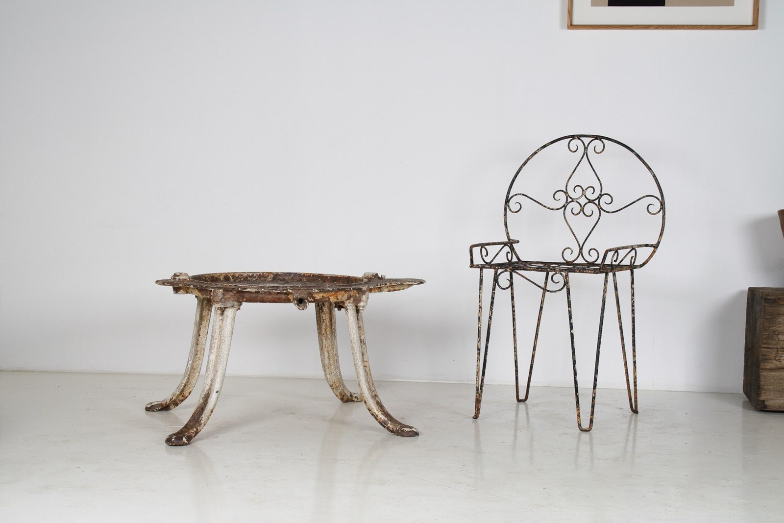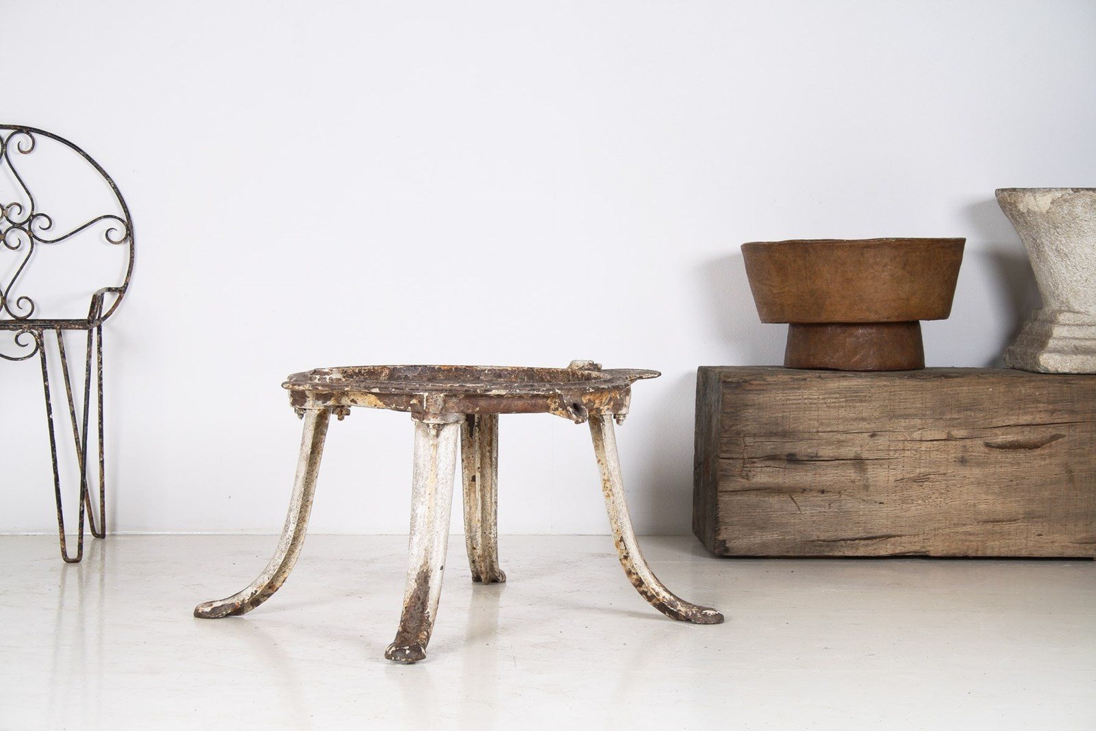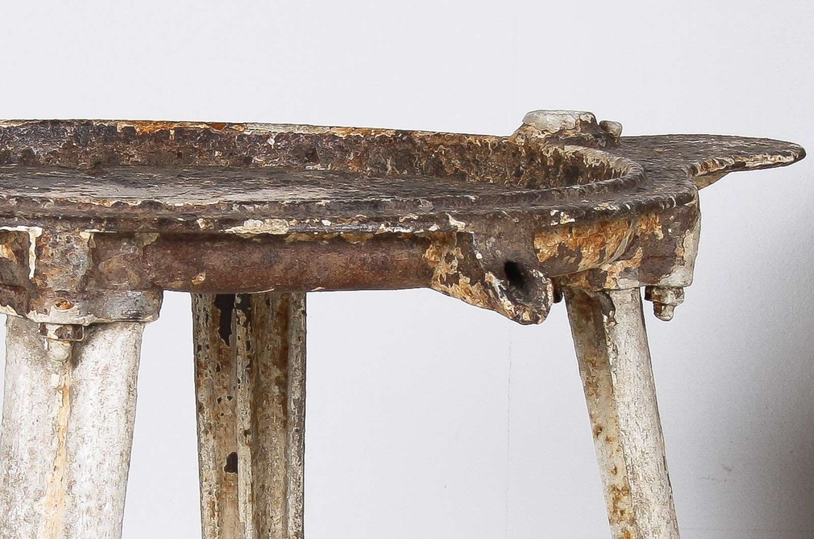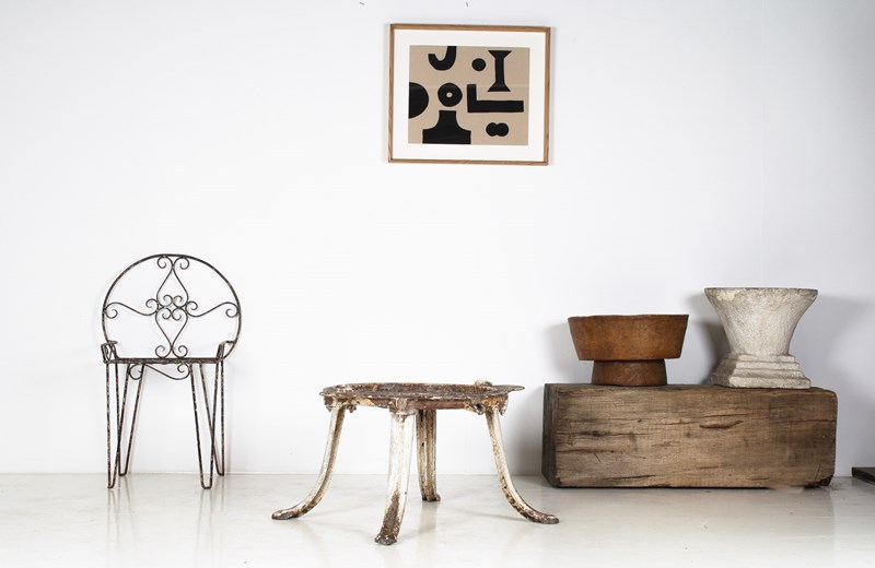 An unusual cast iron cheese press table, extremely well built with heavy splayed legs and a grooved top with drain hole. A wonderful interior decor or garden piece.