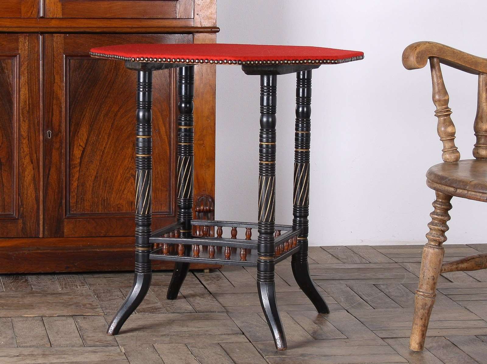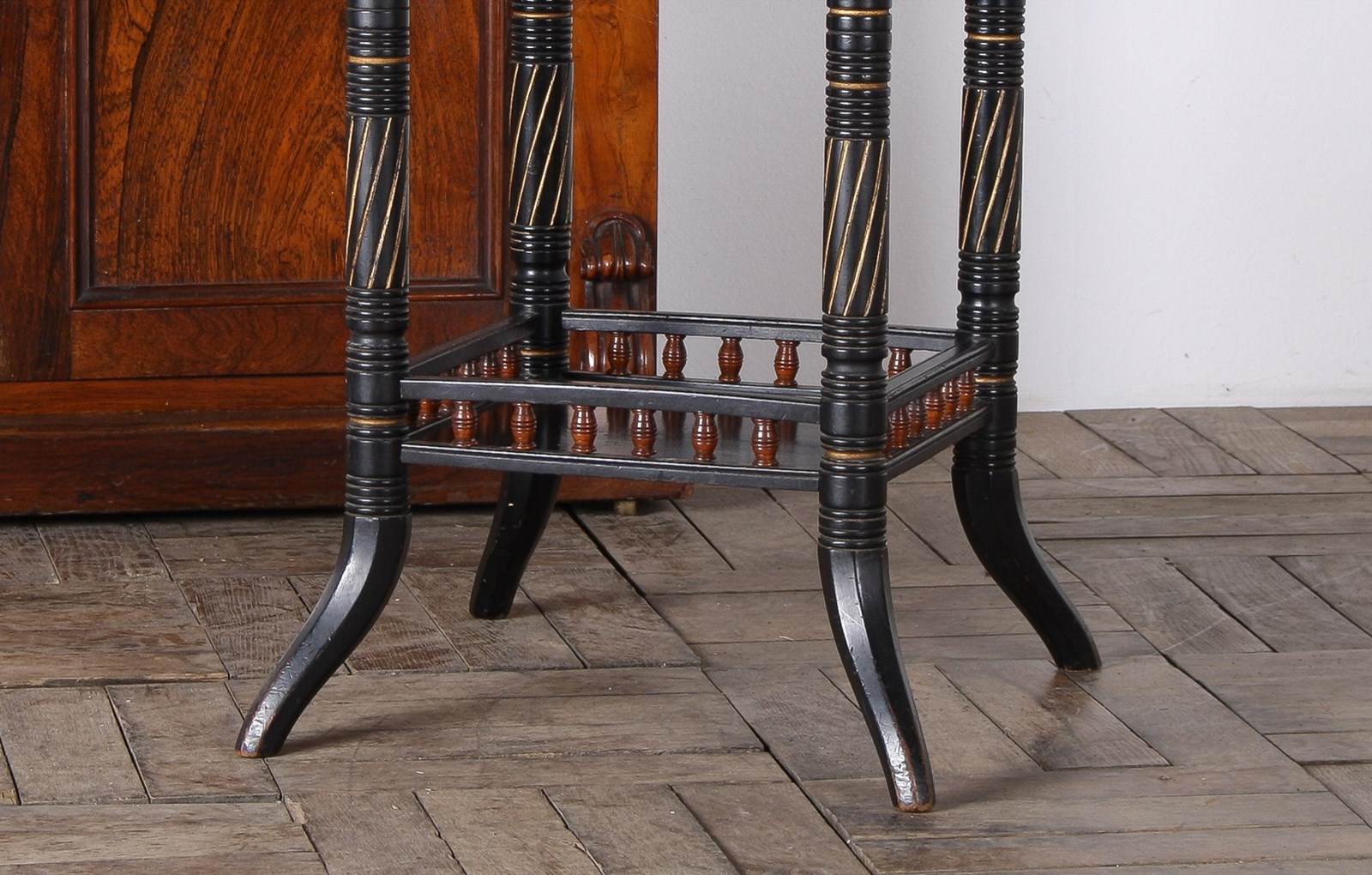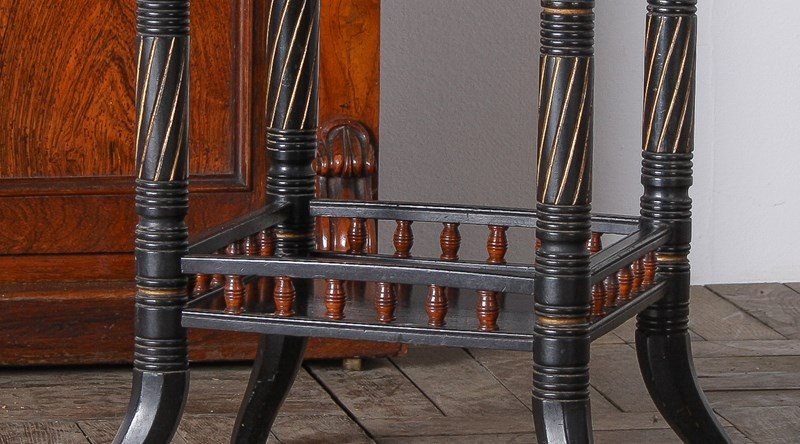 A superbly presented 19th Century Victorian Aesthetic Movement Side Table, crafted in the manner of the renowned designer E.W. Godwin. This exquisite piece features an elegant ebonised finish with gilt detailing.