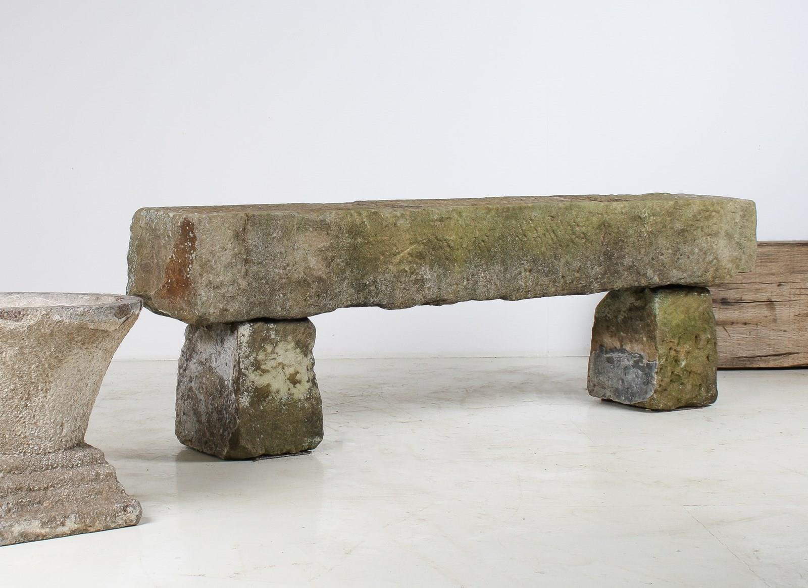 English Carved Stone Sandstone Garden Bench Seat Weathered Garden Feature 1860