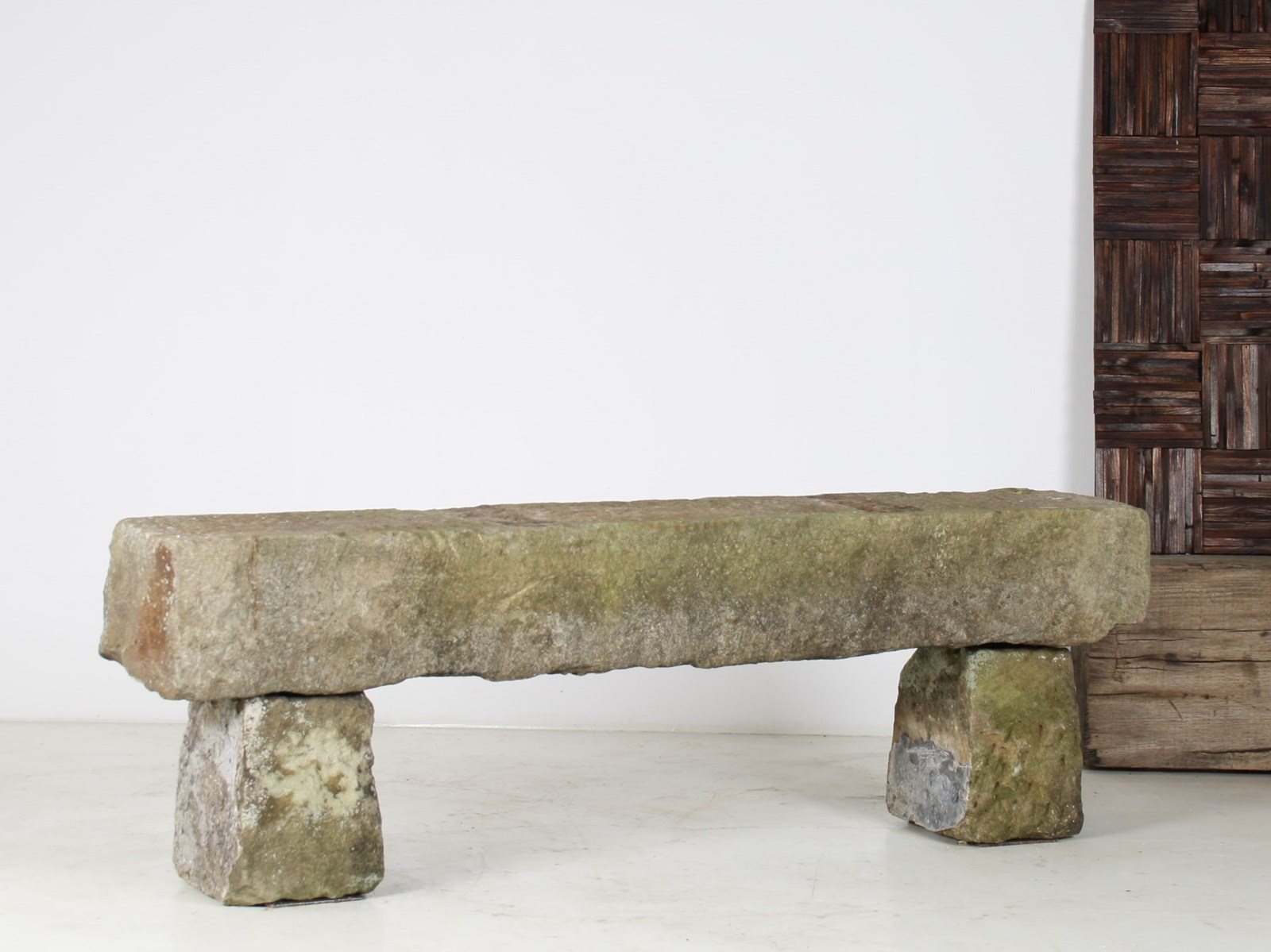 English Carved Stone Sandstone Garden Bench Seat Weathered Garden Feature 1860