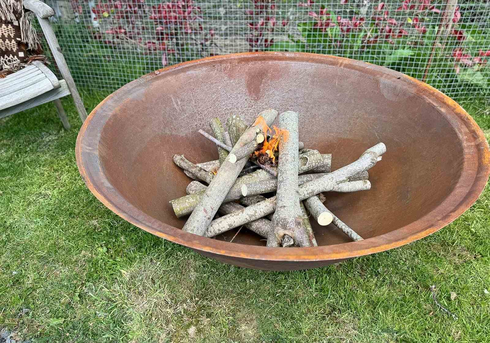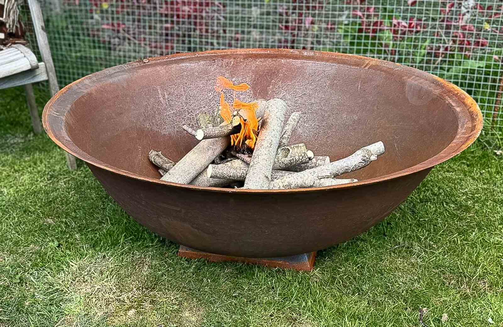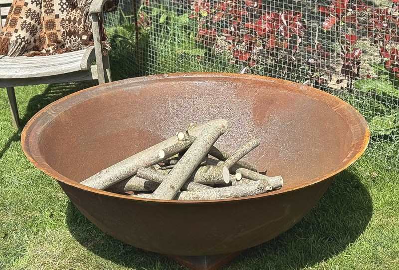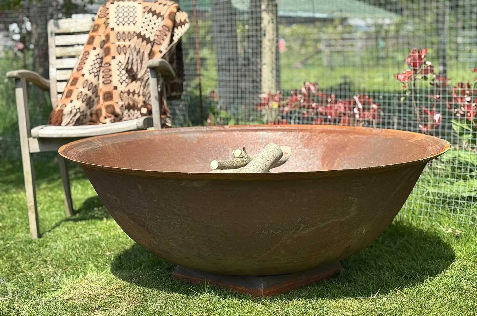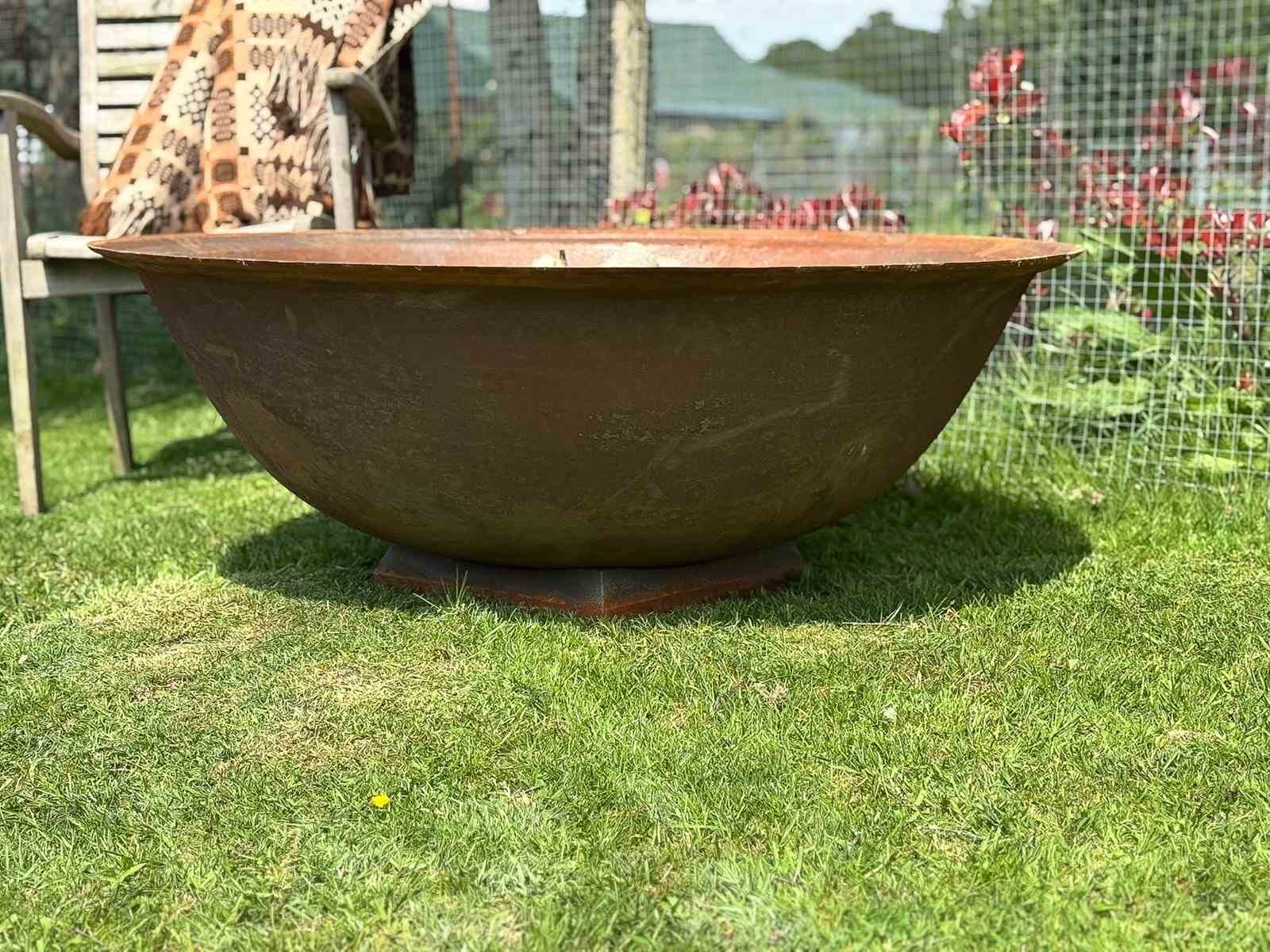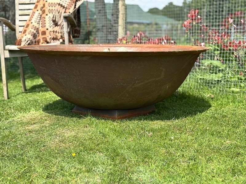 Large 4Ft Natural Cast Iron Garden Fire Pit With A Rust Patina