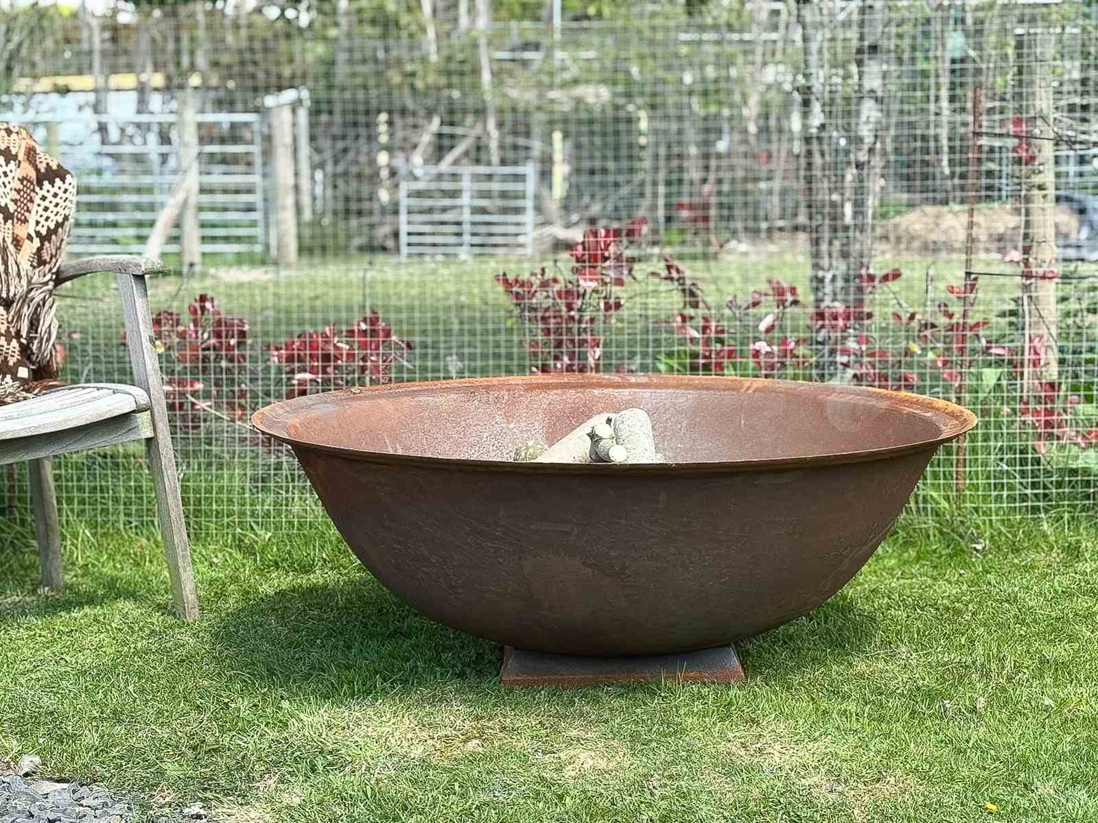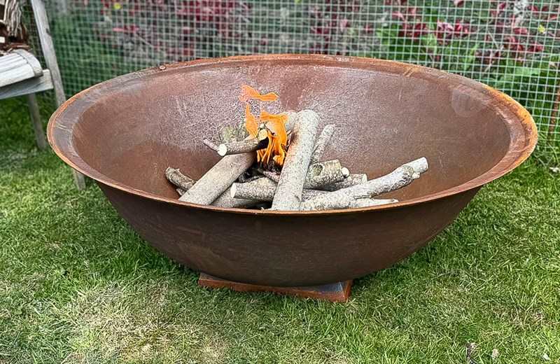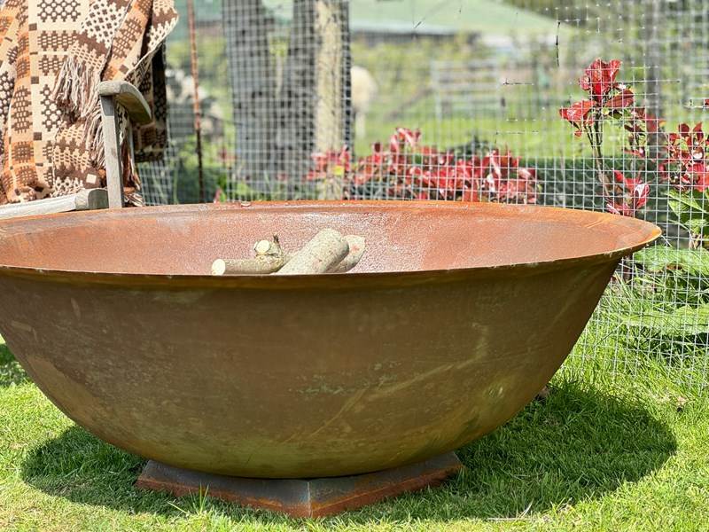 Enhance your outdoor experience with our stunning 4ft cast iron fire pit, featuring a natural rust patina that adds rustic charm. This beautifully crafted deep dish fire pit provides ample space for larger logs, making it a perfect centrepiece for your garden or patio.