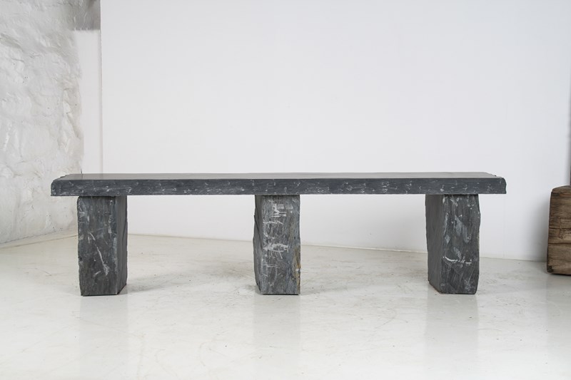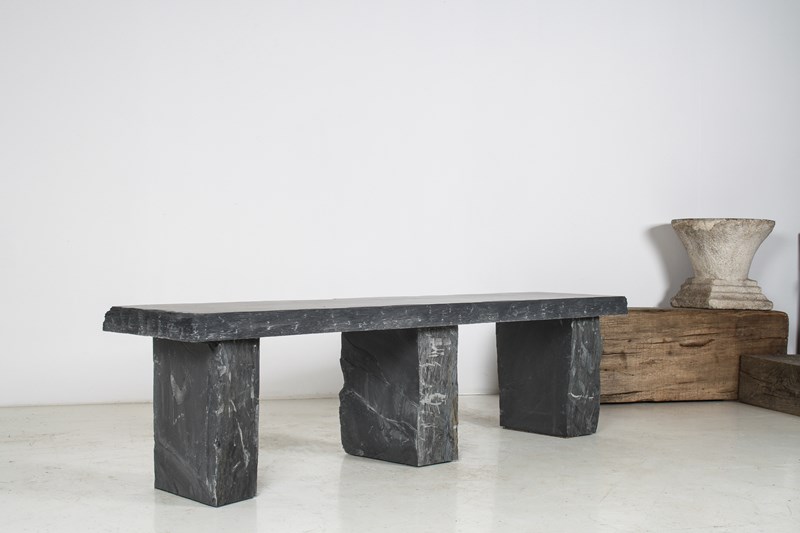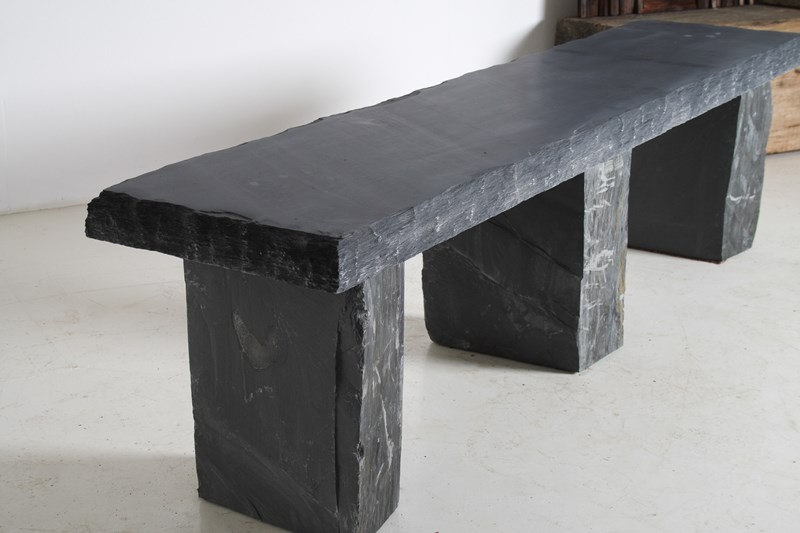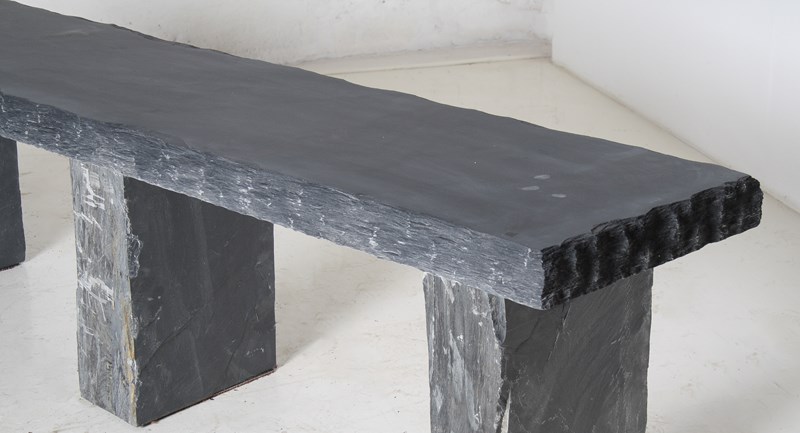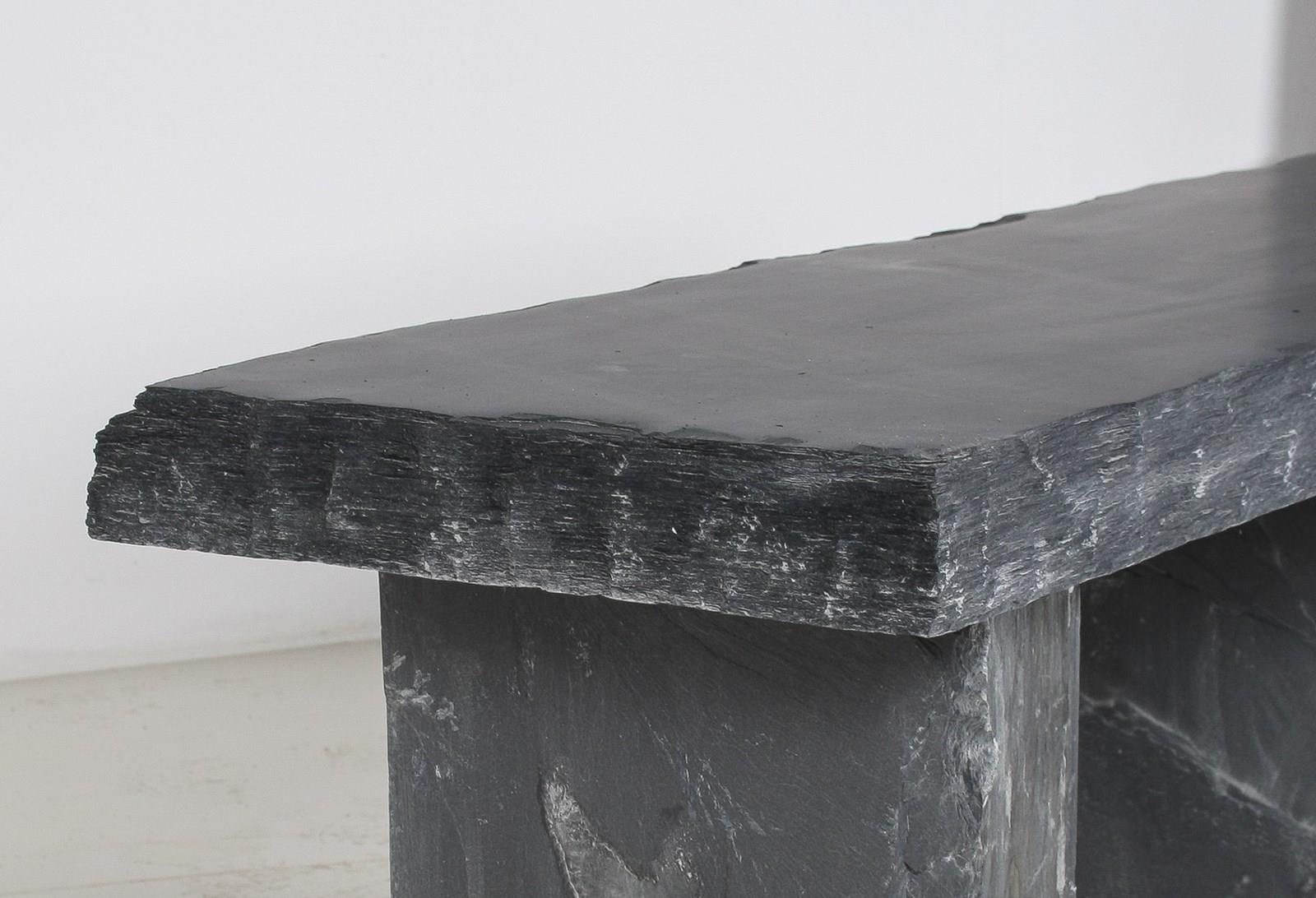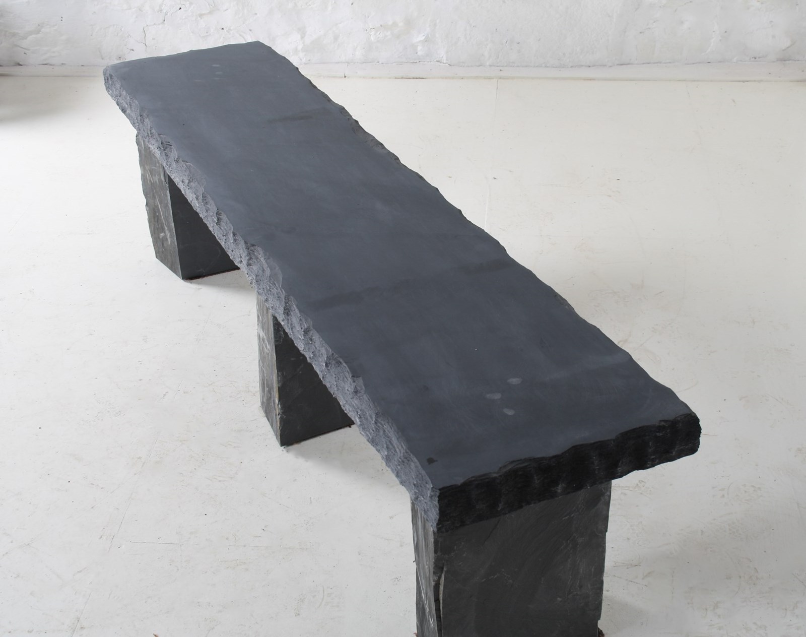 Made up of four components—three bolster (plinth) legs and a single slate slab—this bench is not only functional but also an artistic statement. The three bolster legs provide a rugged yet stable foundation, echoing the dramatic landscapes from which the slate was formed millions of years ago.