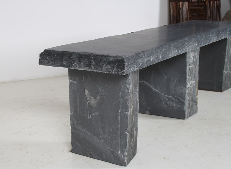 Large 6Ft Natural Wabi-Sabi Stone Slate Bench Seat On Bolster Plinth Base