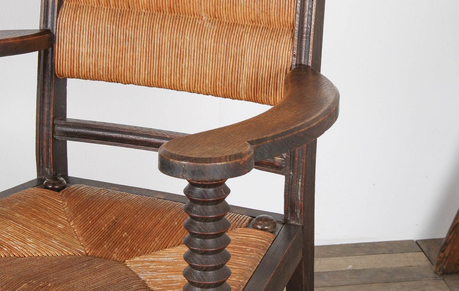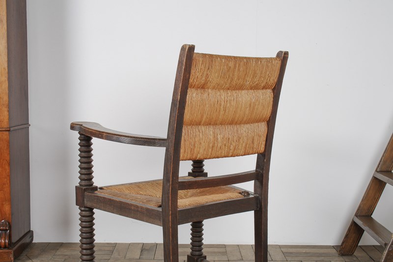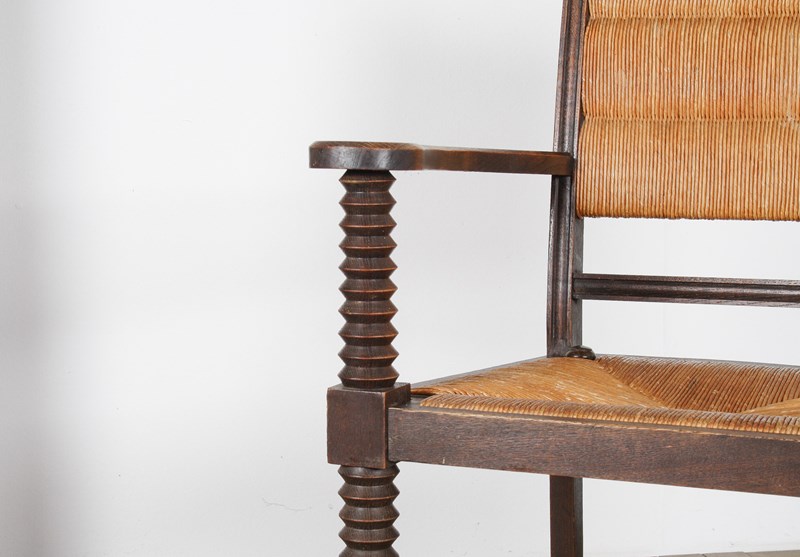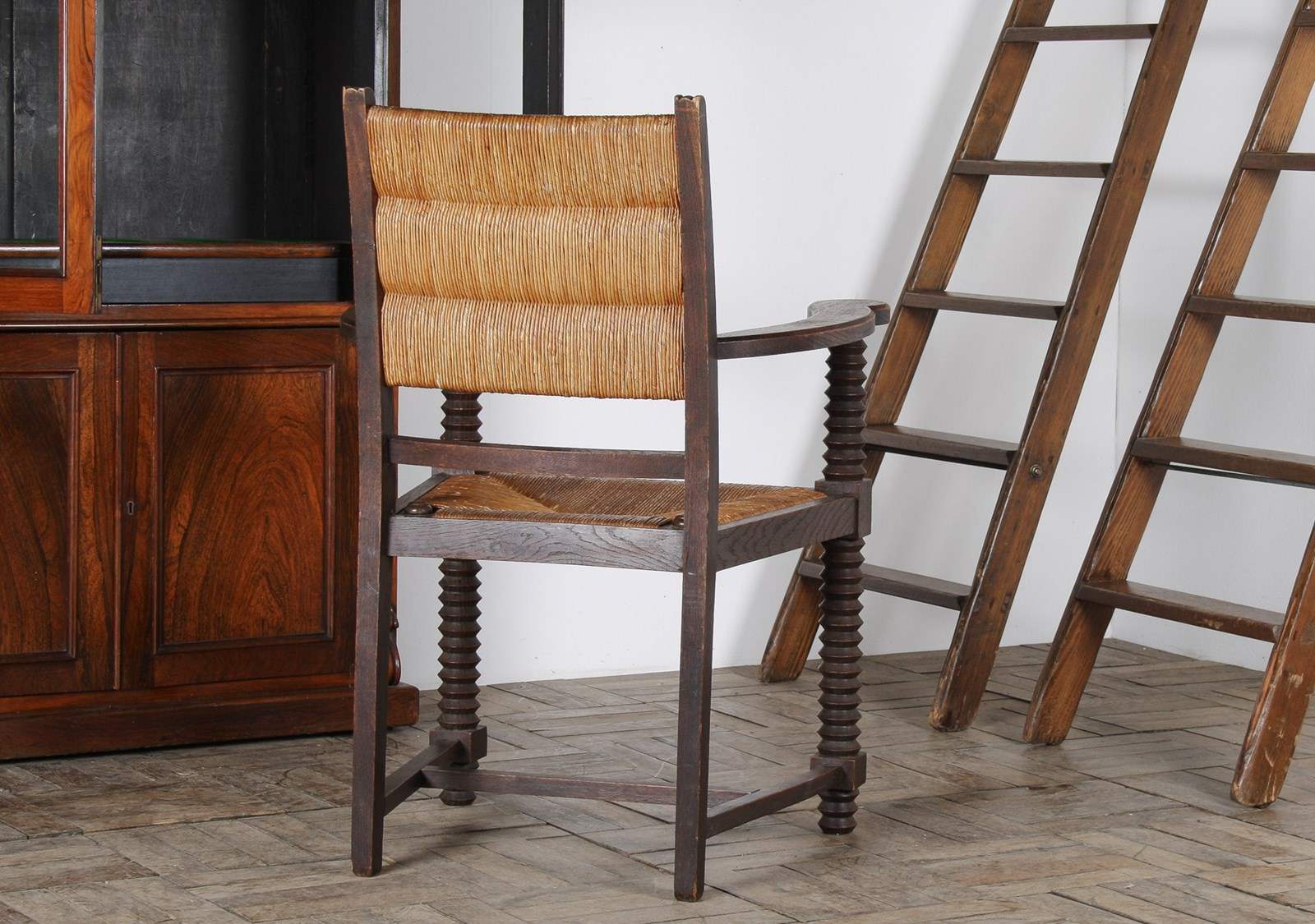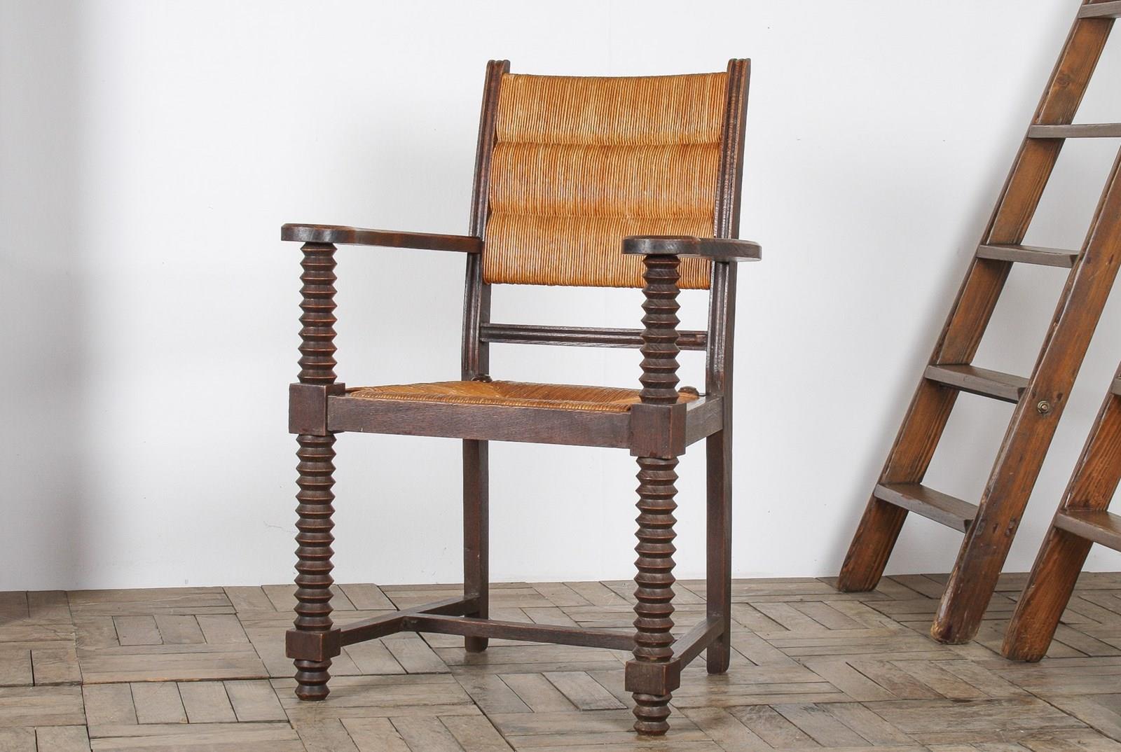 Oak Corkscrew 1950S Armchair With Straw Seat Attributed To Charles Dudouyt