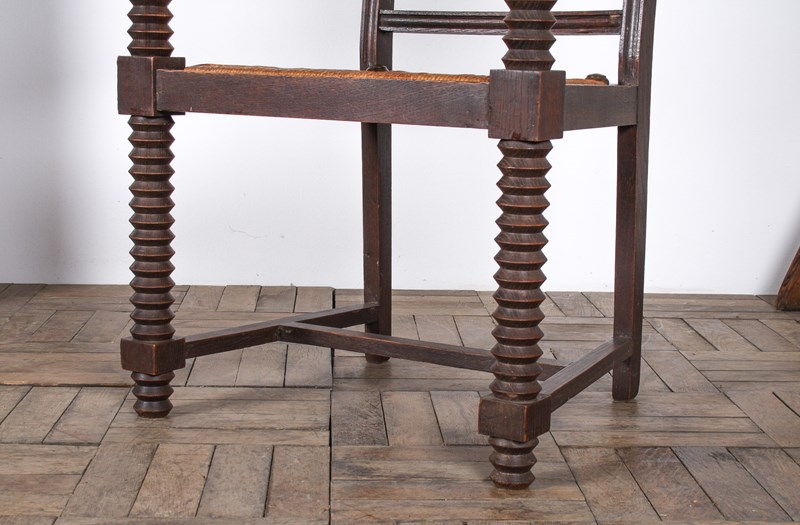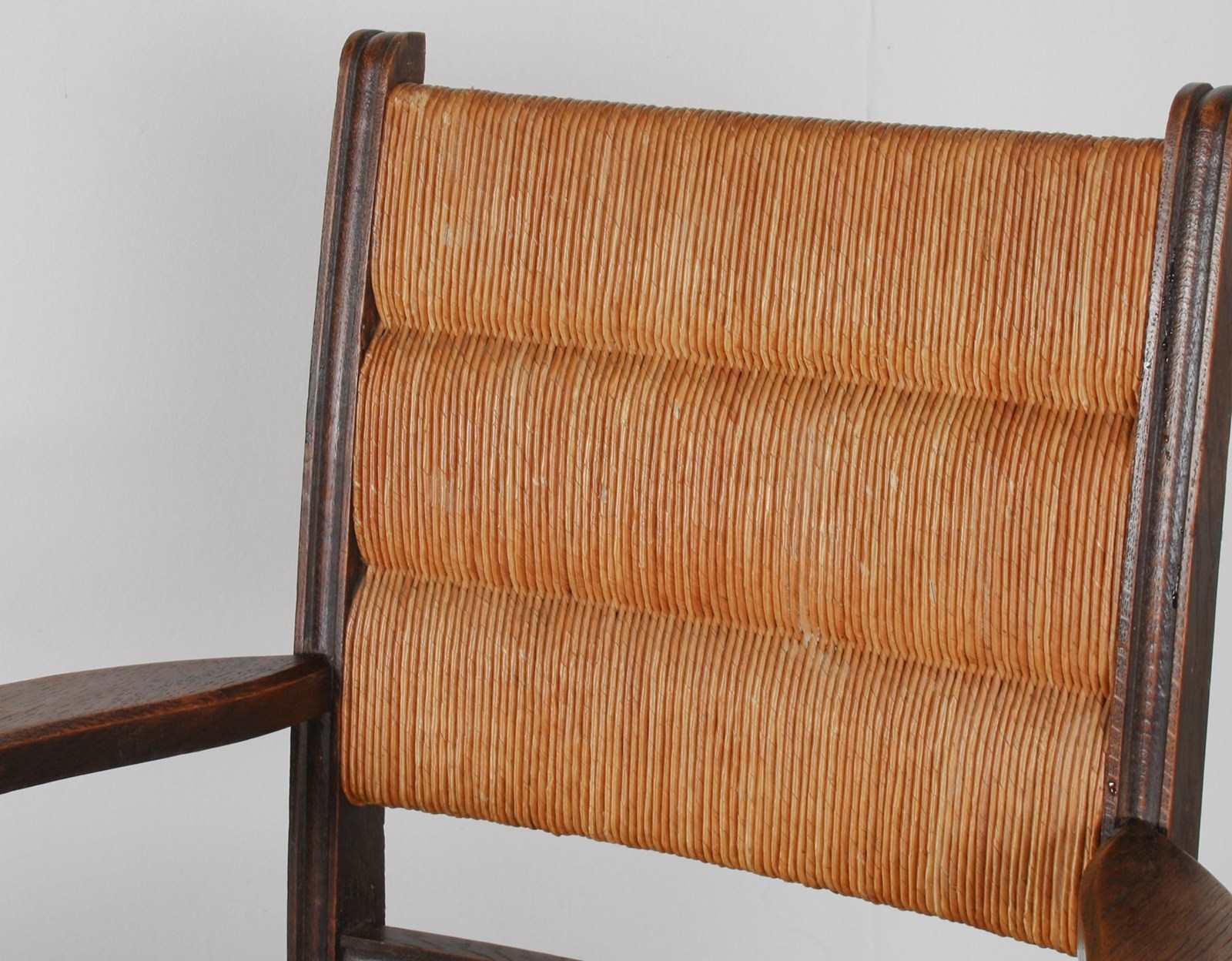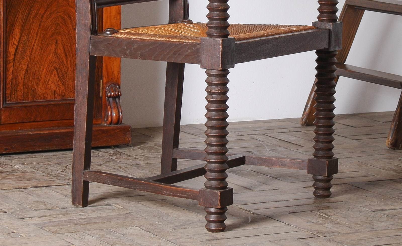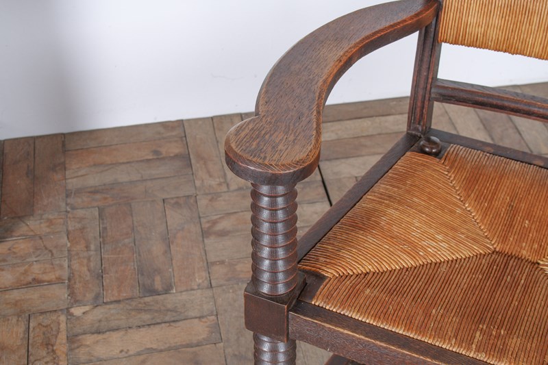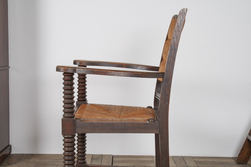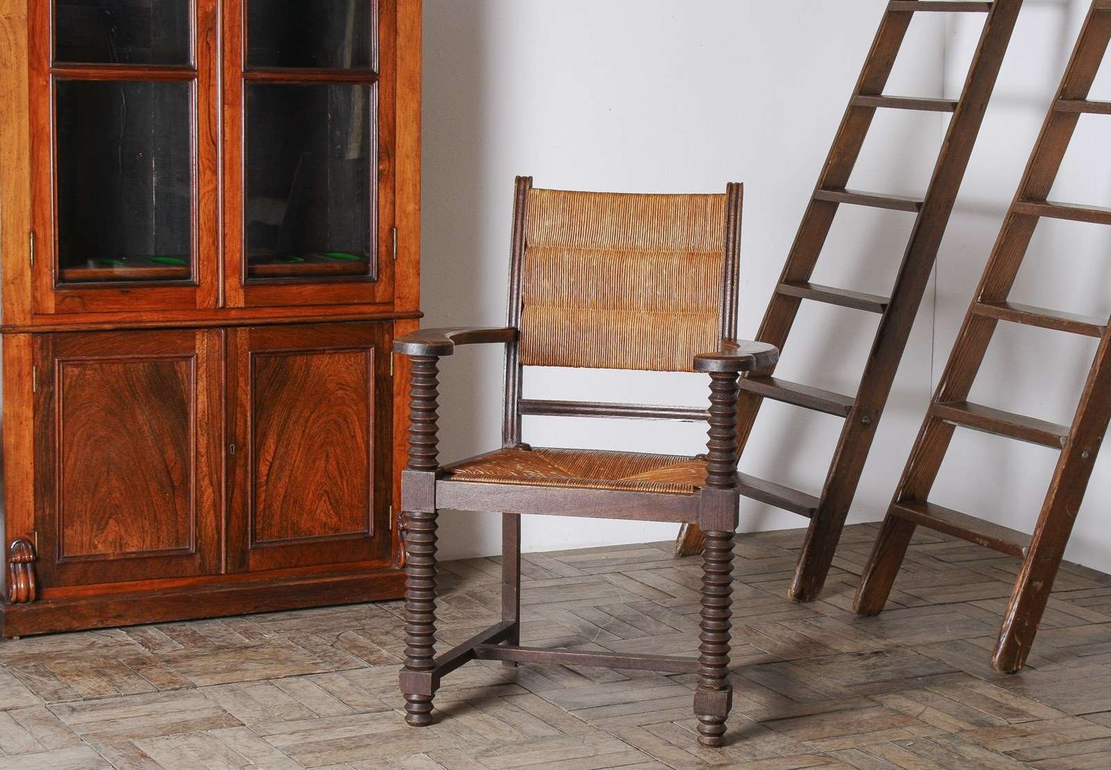 Oak Corkscrew 1950S Armchair With Straw Seat Attributed To Charles Dudouyt