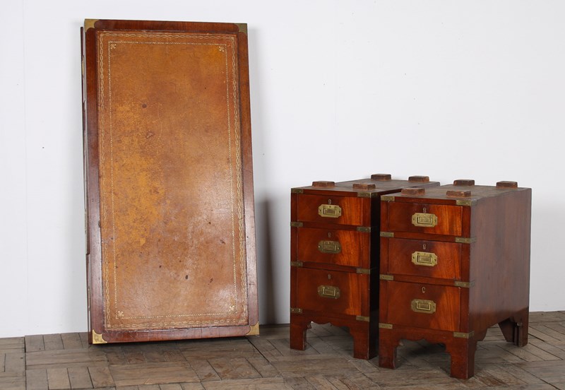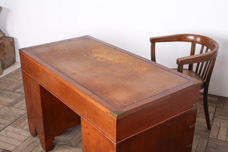 Original 19Th-Century Antique British Campaign Desk Writing Table Leather Top