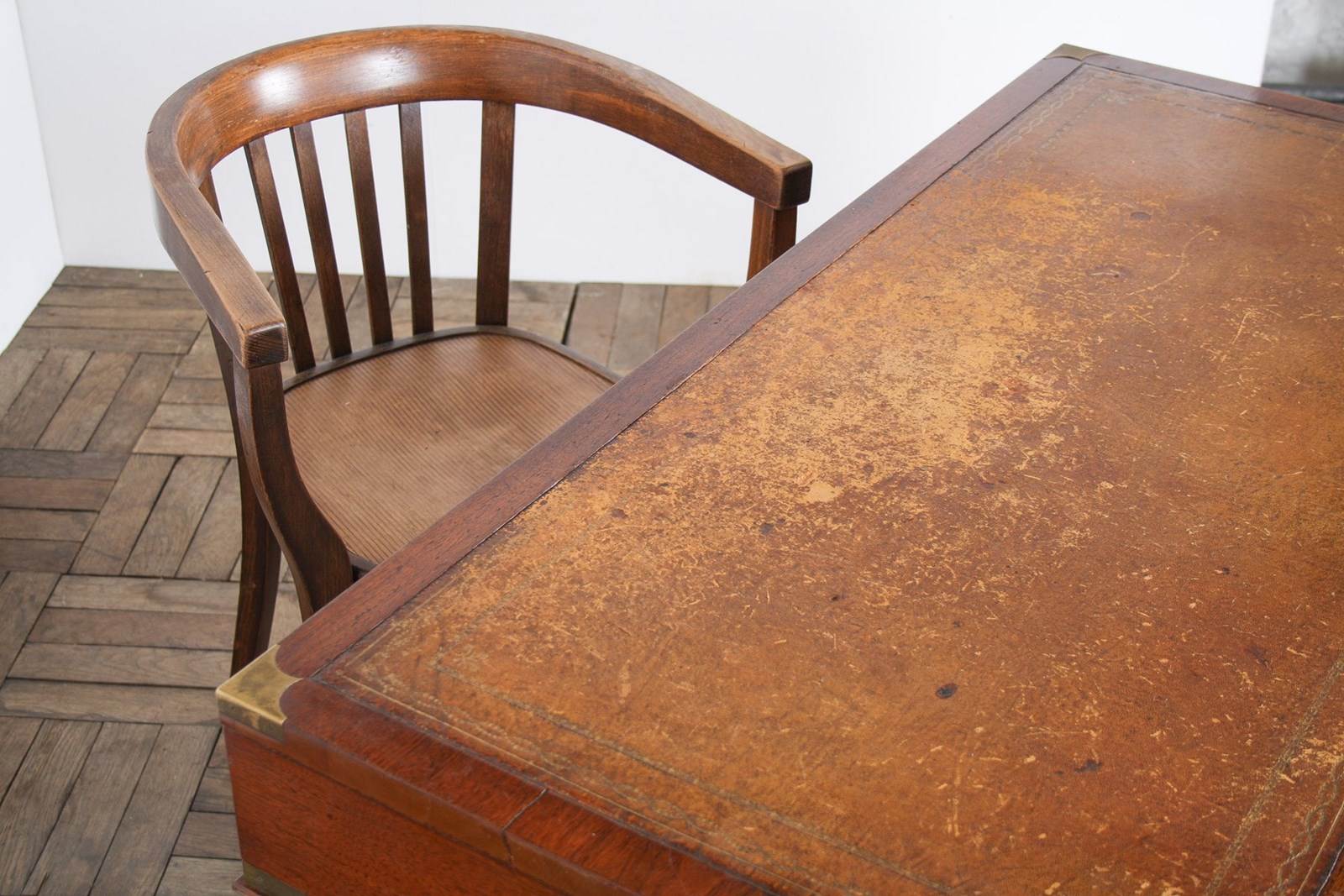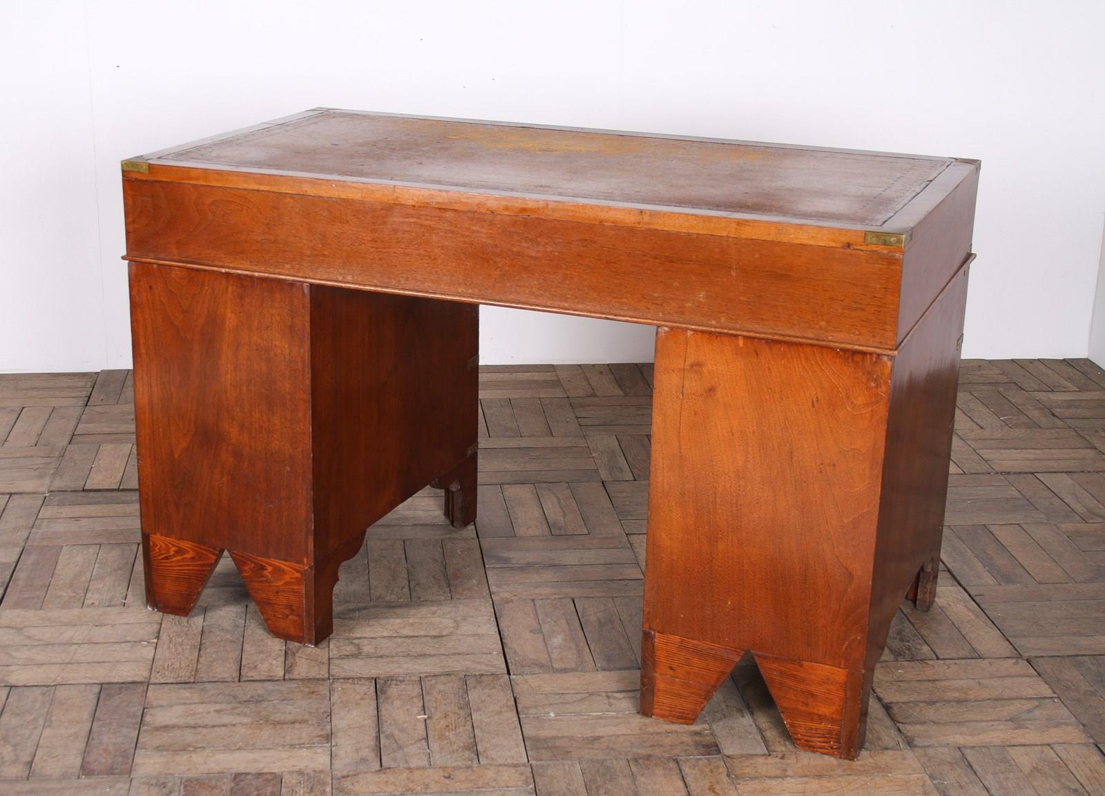 Condition Report: This desk is in wonderful original condition with some historic repairs that add to its character. It has developed a beautiful patina over time, and the leather top demonstrates authentic wear, complete with ink marks that enhance its authenticity and testify to its use in the field. Despite this wear, the leather remains in good sound order with a couple of very small losses on the edge. Each piece in our collection goes through a thorough workshop inspection to give peace of mind to buyers that every item is solid and ready to use.