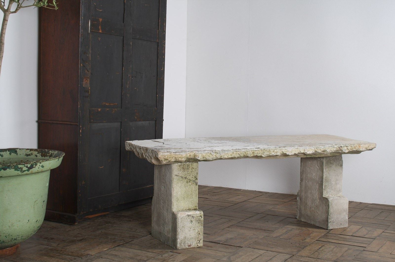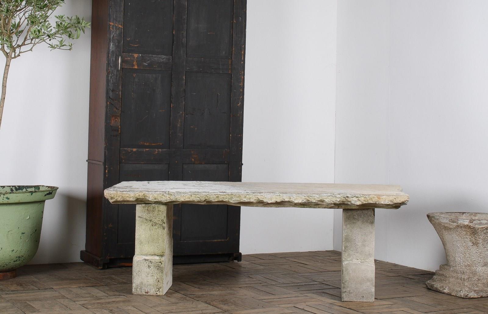 This garden bench is in excellent condition, with the natural wear and character of the stone only enhancing its beauty and charm. The rustic finish and unique markings tell a story of its past, making it a conversation piece in any garden.