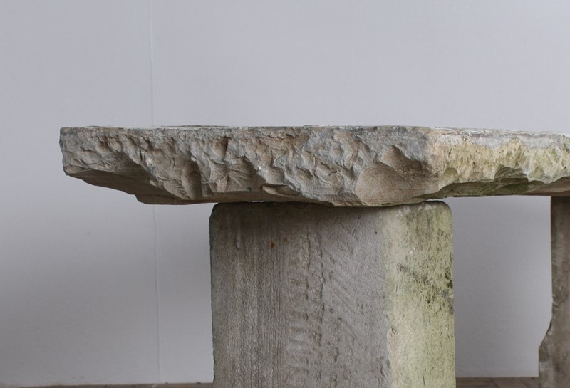 A superb English garden piece, this stunning Reclaimed Carved Stone Garden Bench Seat is a perfect example of rustic charm and timeless elegance. This exquisite bench features a top made from Yorkstone, which has developed a characterful patina reminiscent of lime wash, giving it a unique aesthetic.