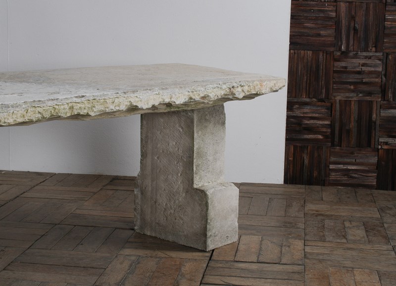 The bench top showcases a natural hand-cut edge, creating a superb natural look that beautifully complements both outdoor and indoor settings. The design is both functional and artistic, making it an ideal addition to gardens, patios, orangeries, loggias, or as a feature piece in a hallway.