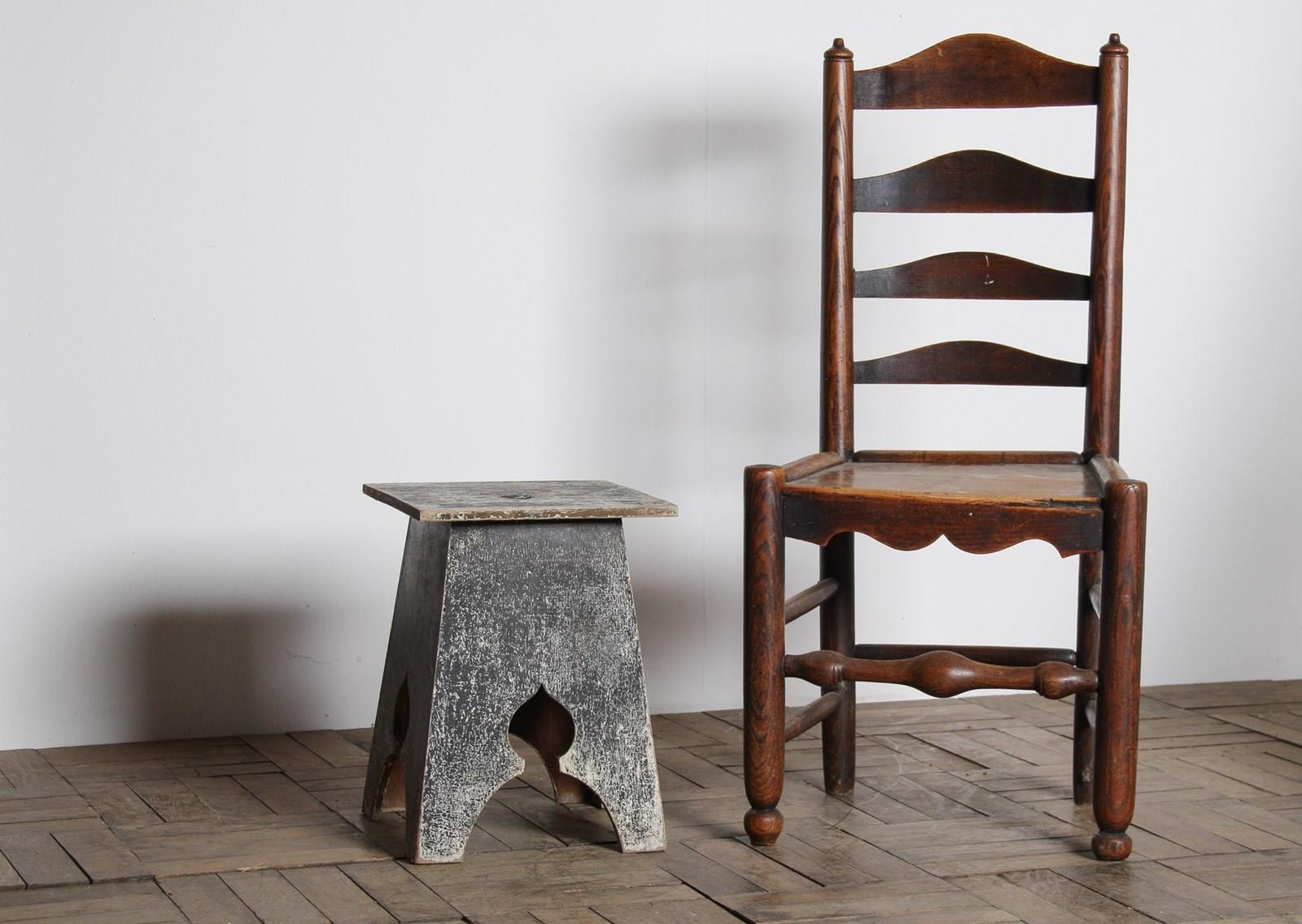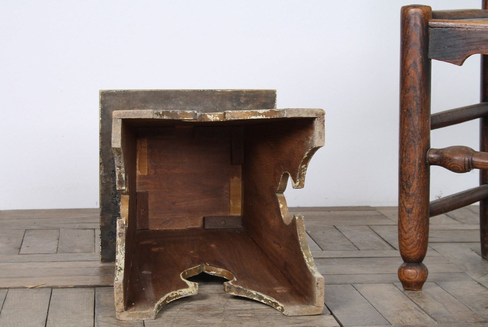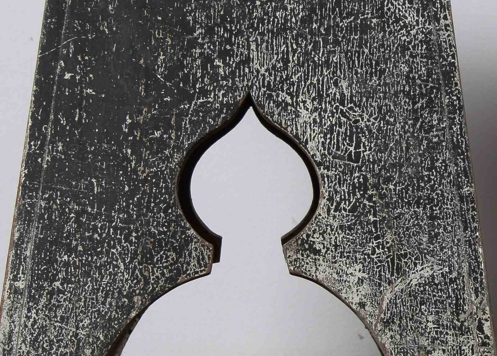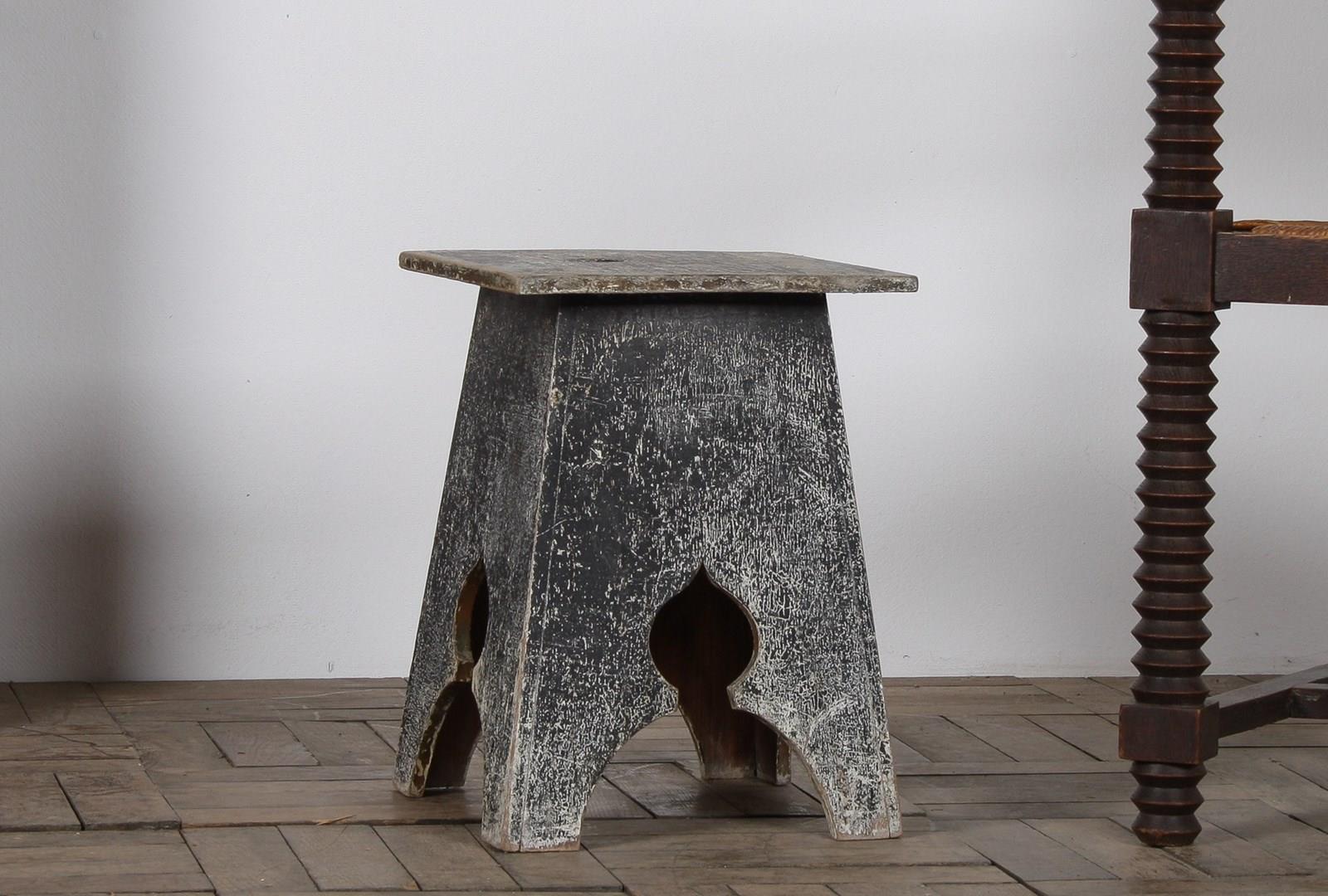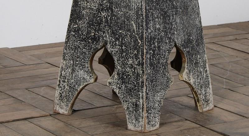 Small but perfectly formed, this simple yet striking little table features a square top with four tapered sides and a sculpted ecclesiastical-style motif. The understated design captures the essence of the Arts and Crafts movement, with the added patina that makes this one standout.
