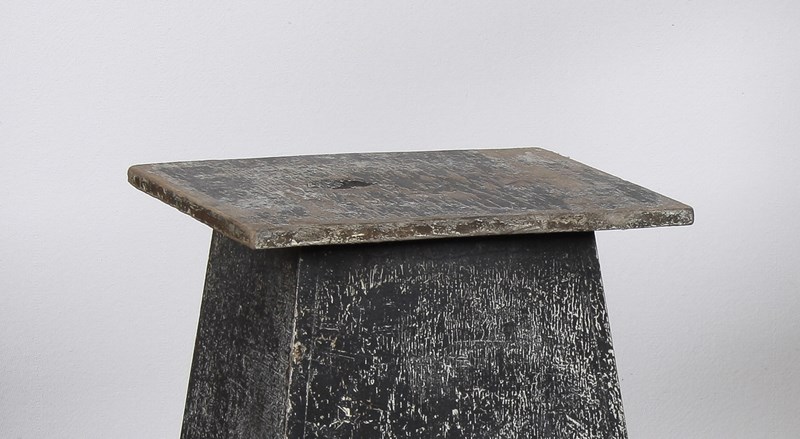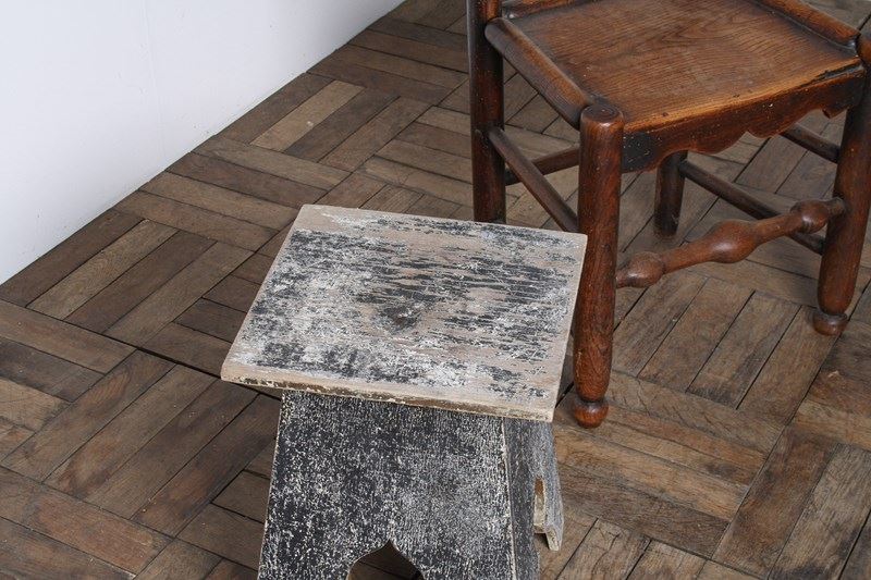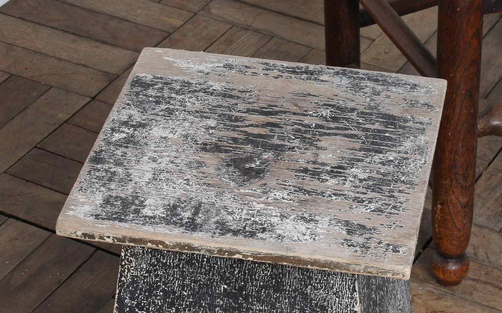 A charming Arts and Crafts Side Table, hand-painted and beautifully worn to reveal a wonderful rustic patina. The grey, nearly charcoal finish with white flecks has aged perfectly, exposing the wood underneath and adding character and texture to any space.