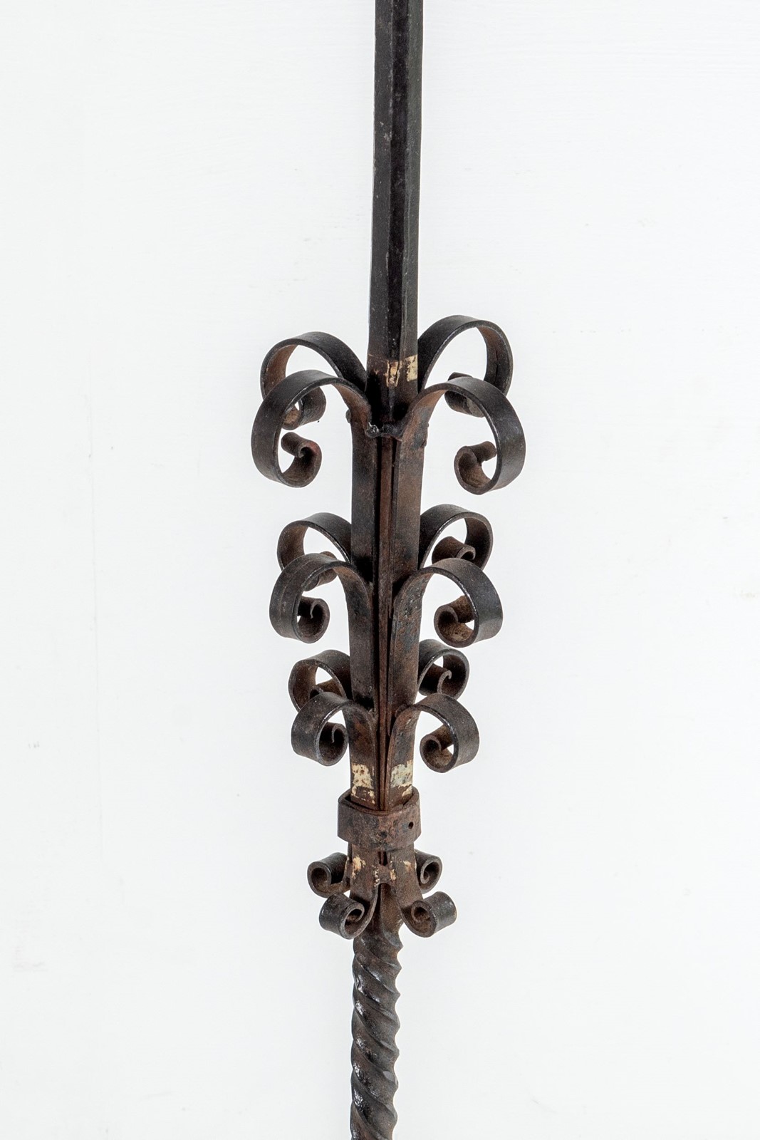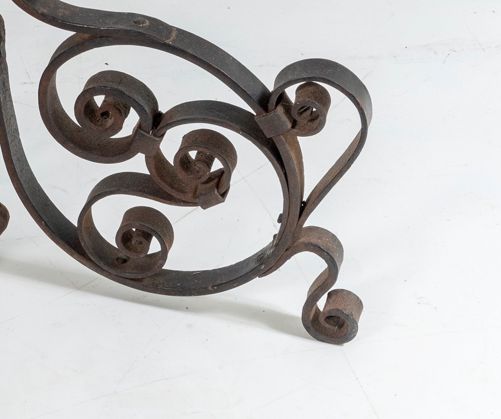 A wonderful 19th Century Wrought Iron Candelabra, heavy form blacksmith made with lovely scroll details. The 5 arm candle tree is almost 3ft across, each candle holder is 4.75″ diameter. Circa 1890, this is a wonderful estate made piece of the highest quality. A special country house piece that will add character and substance to a room. Provenance: Thornbury Castle, Gloucestershire, England. In excellent condition, with a lovely aged patina. A solid sturdy piece.