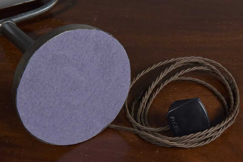 Cleaned, lightly polished, waxed and rewired with 2.5m fabric flex, original BC lampholder, new UK made brass toggle switch and traditional phenolic plug. New fabric to base. Pat tested.