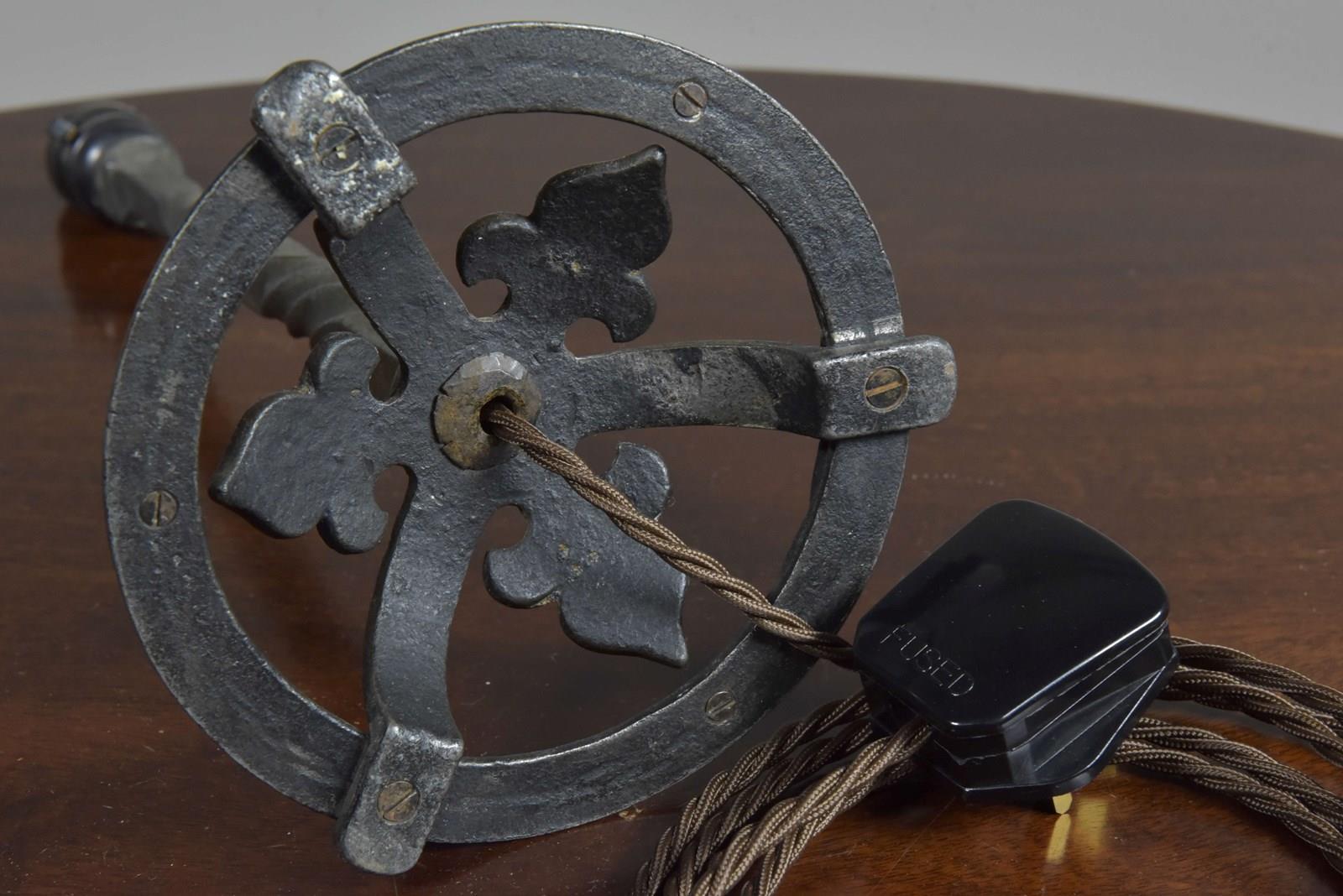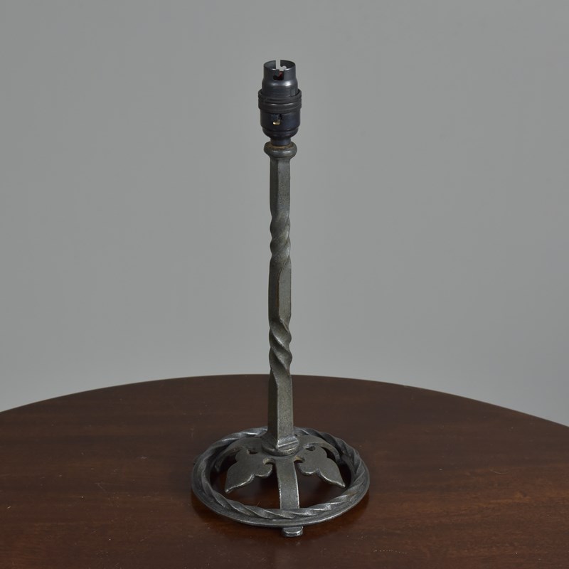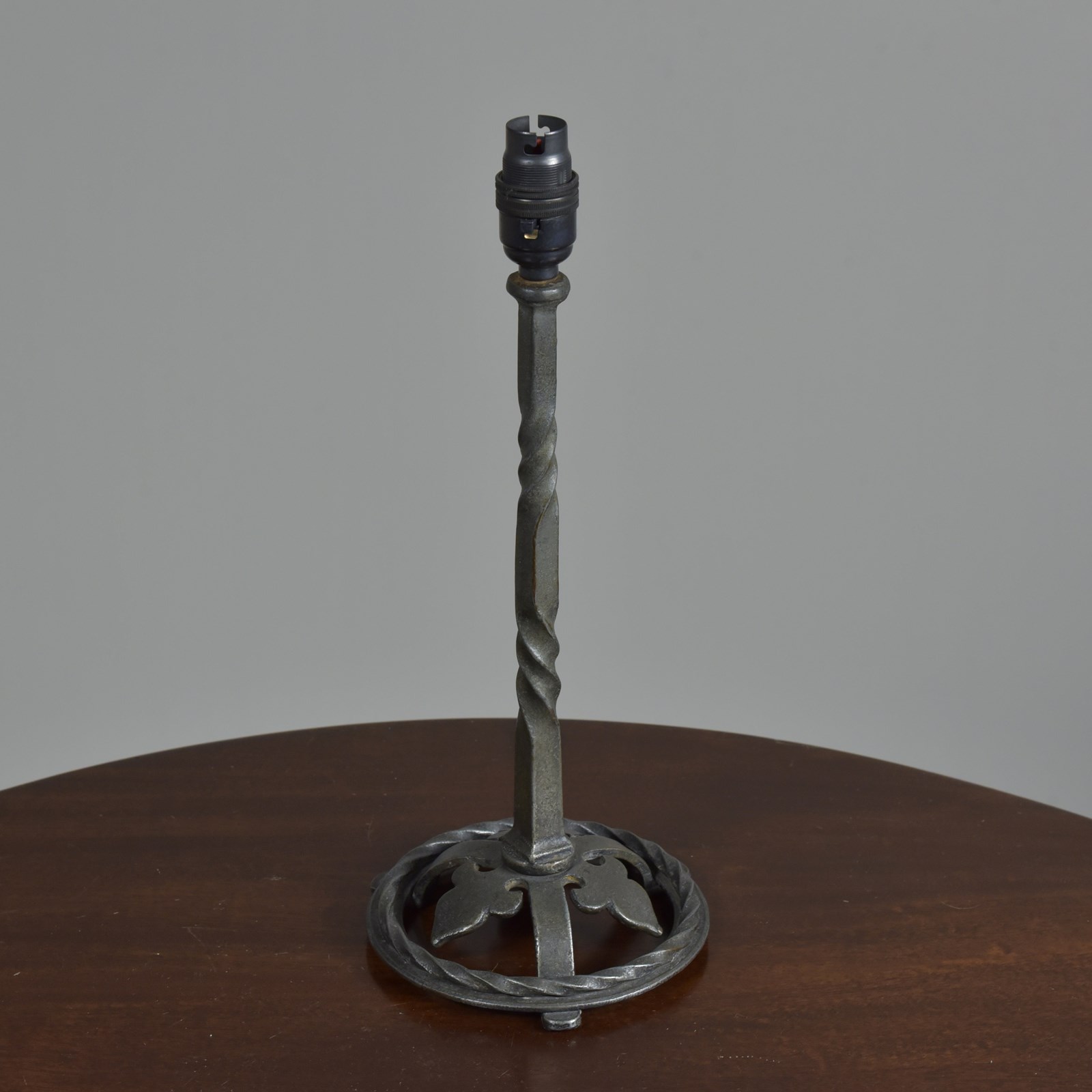 An antique Arts & Crafts iron table lamp. English, early 20th century.
