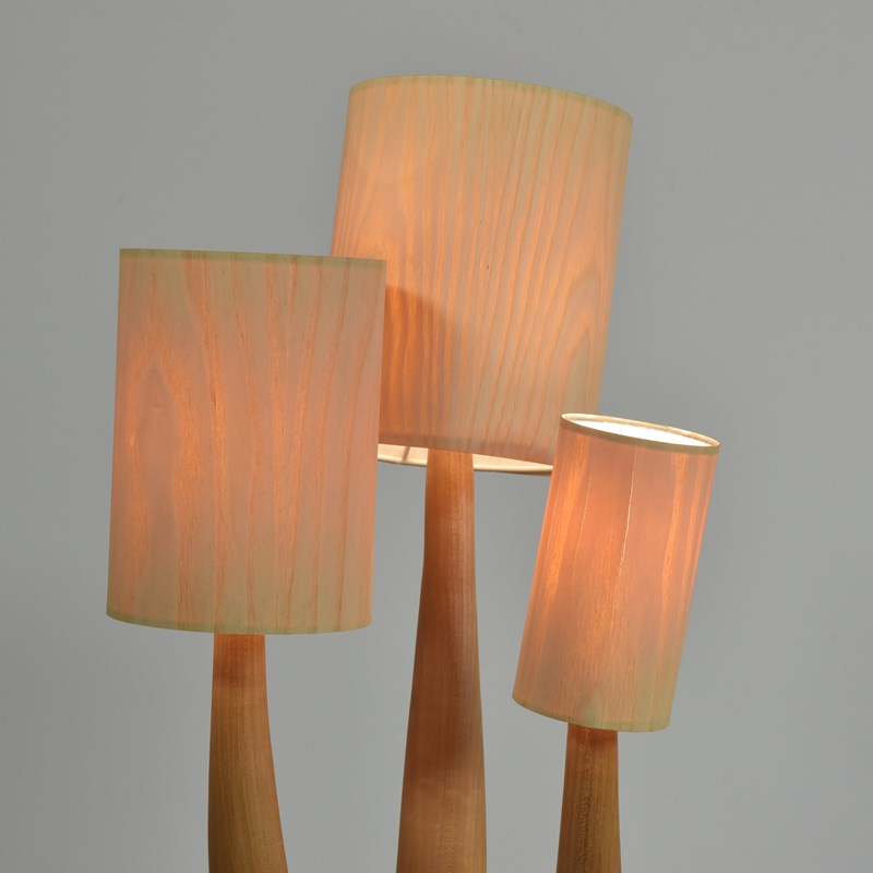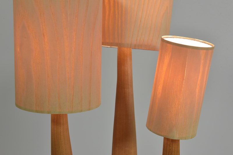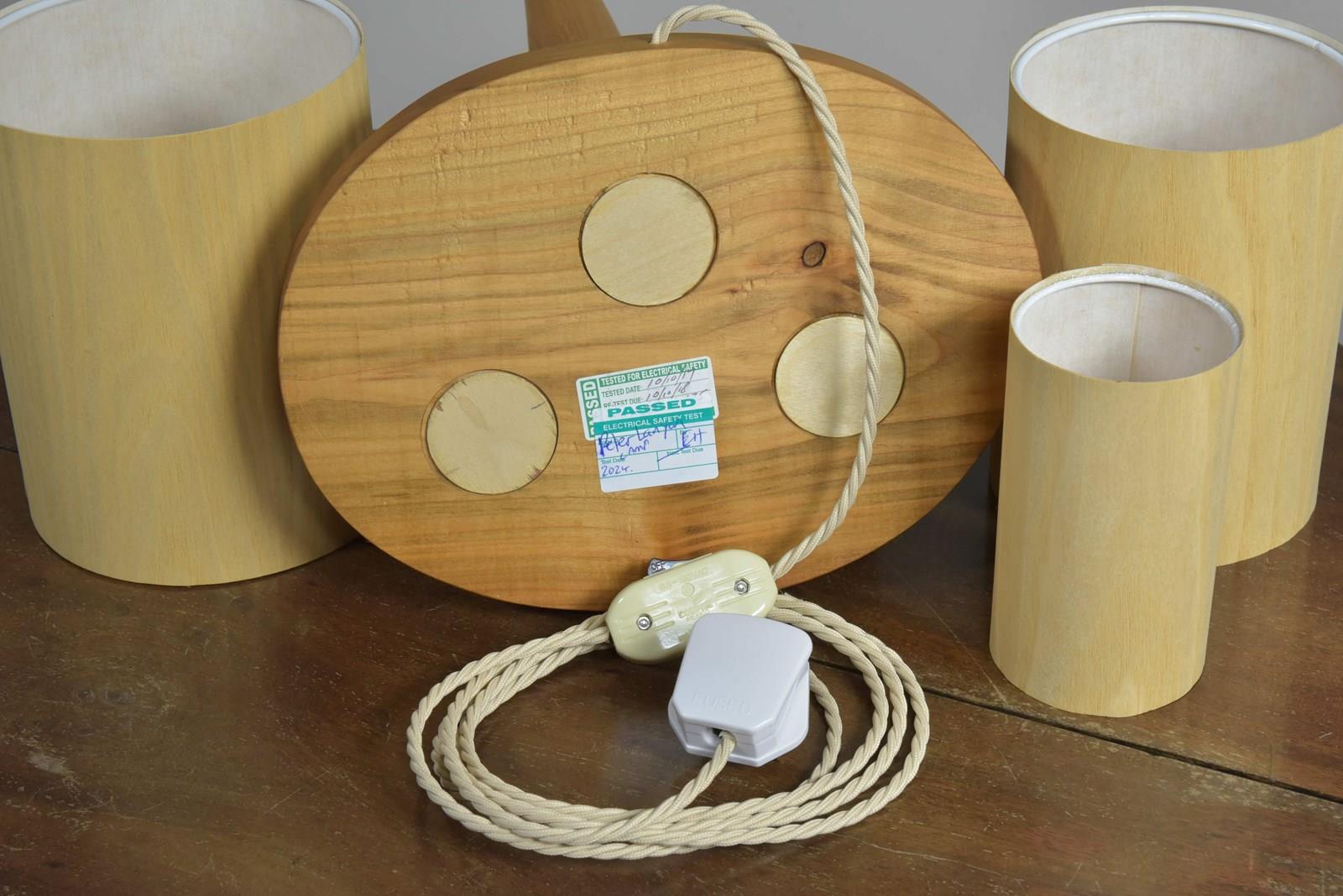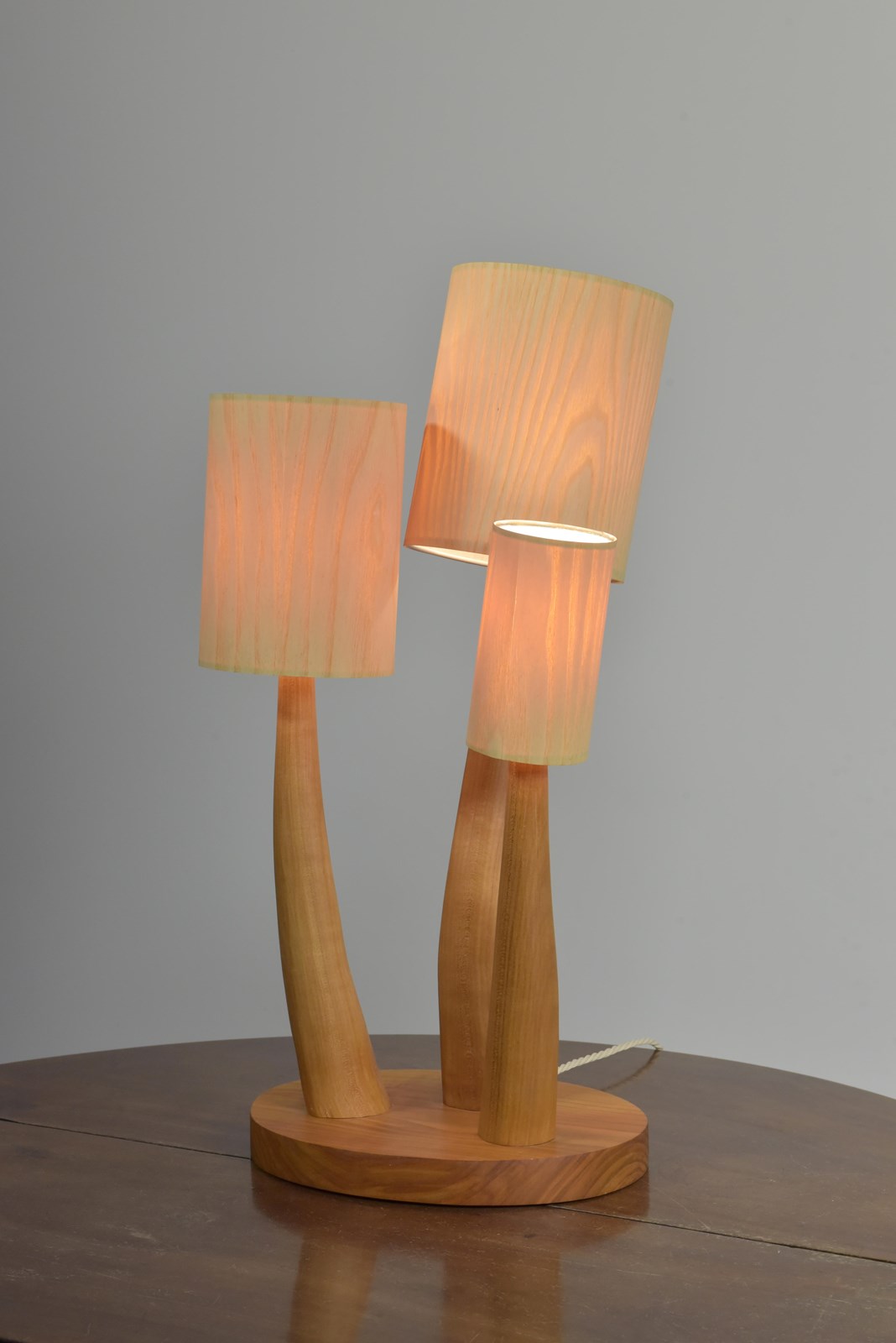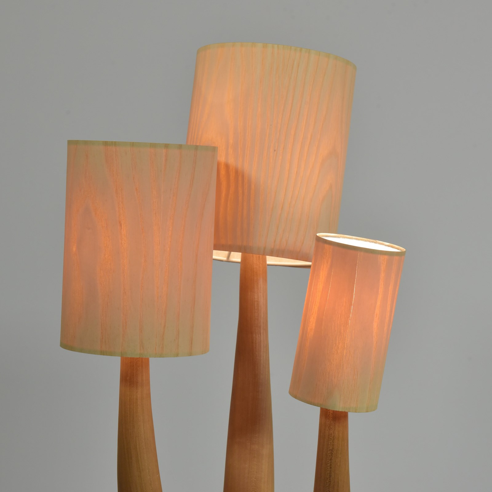 A unique triple table lamp hand crafted from British hardwoods by Peter Lanyon in Devon. 21st century.