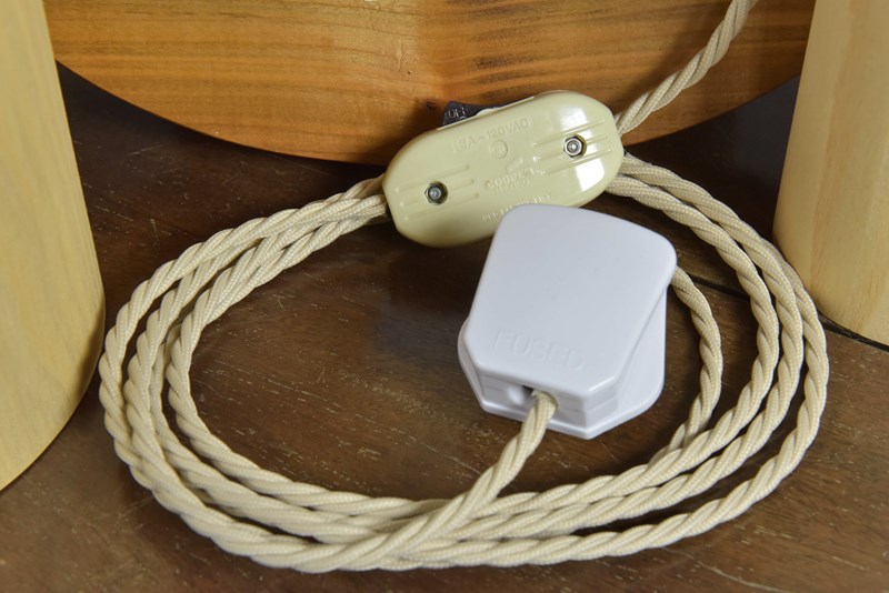 Rewired with 2.5m (exposed) fabric flex, quality inline switch and phenolic 3amp plug.