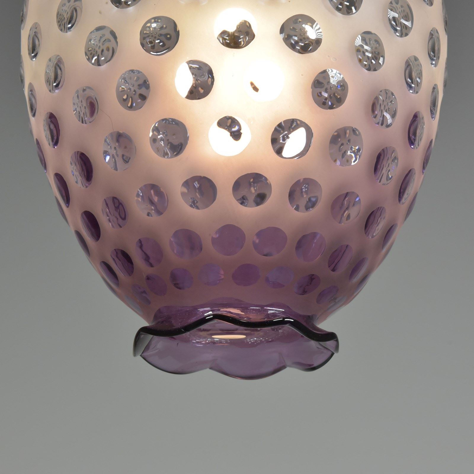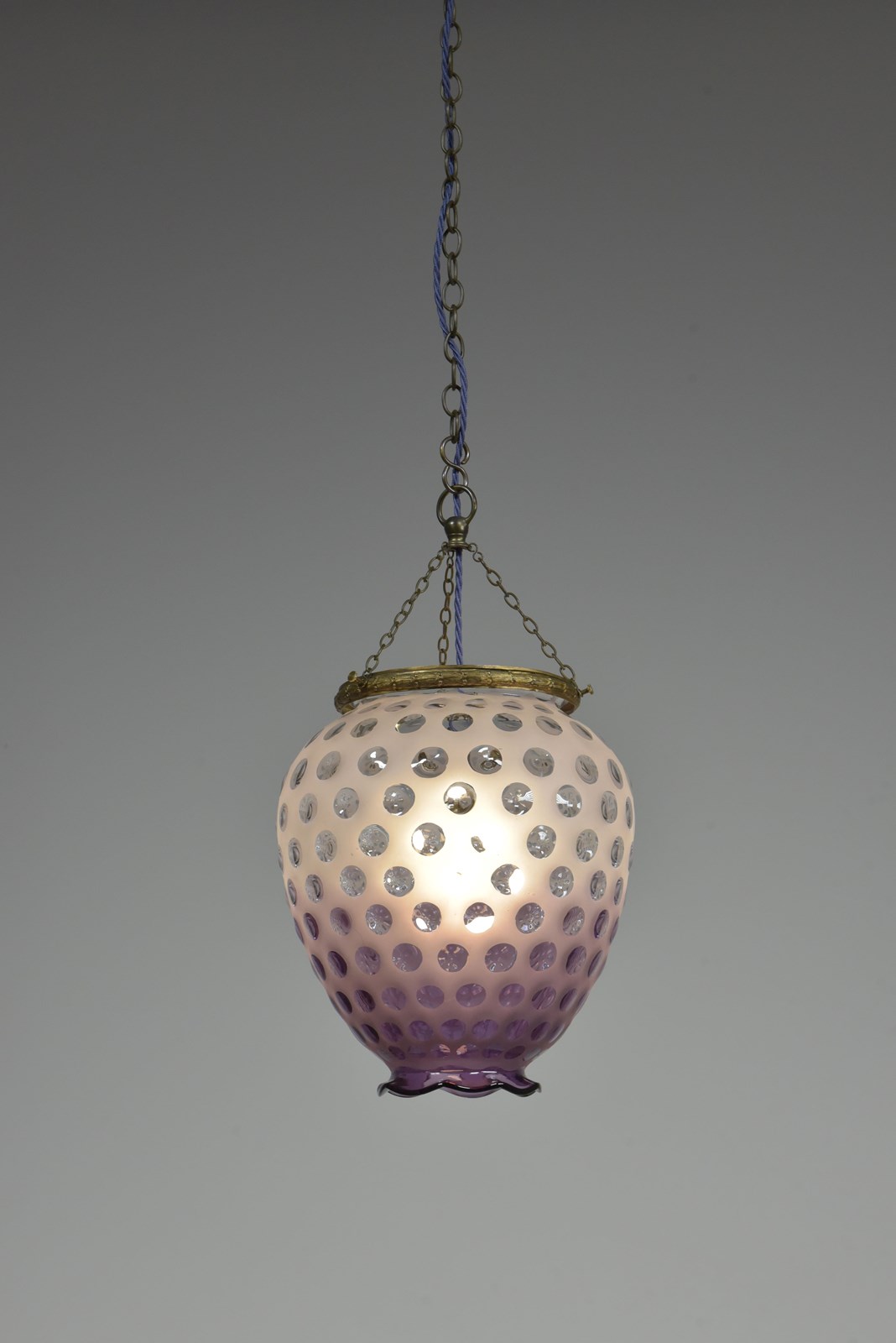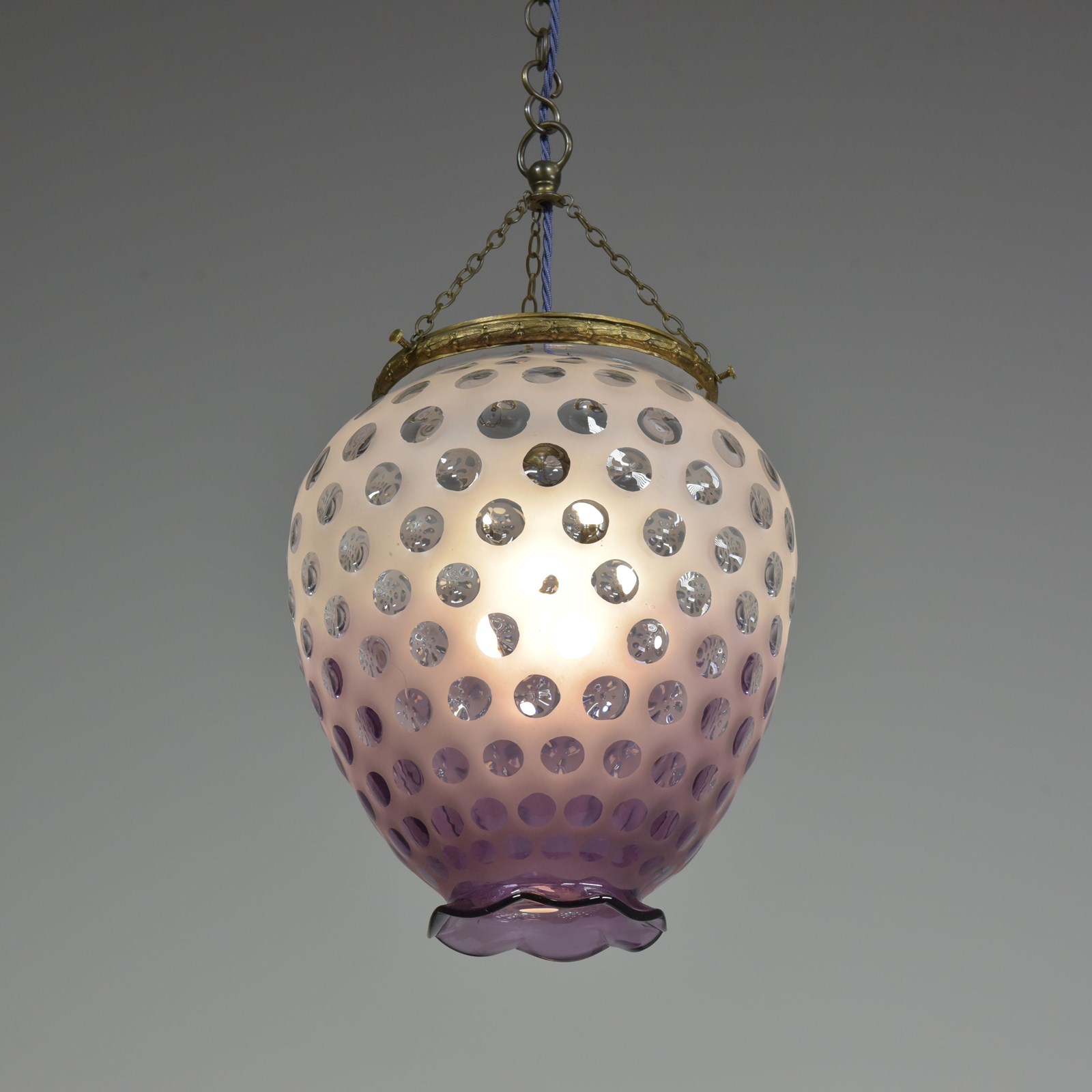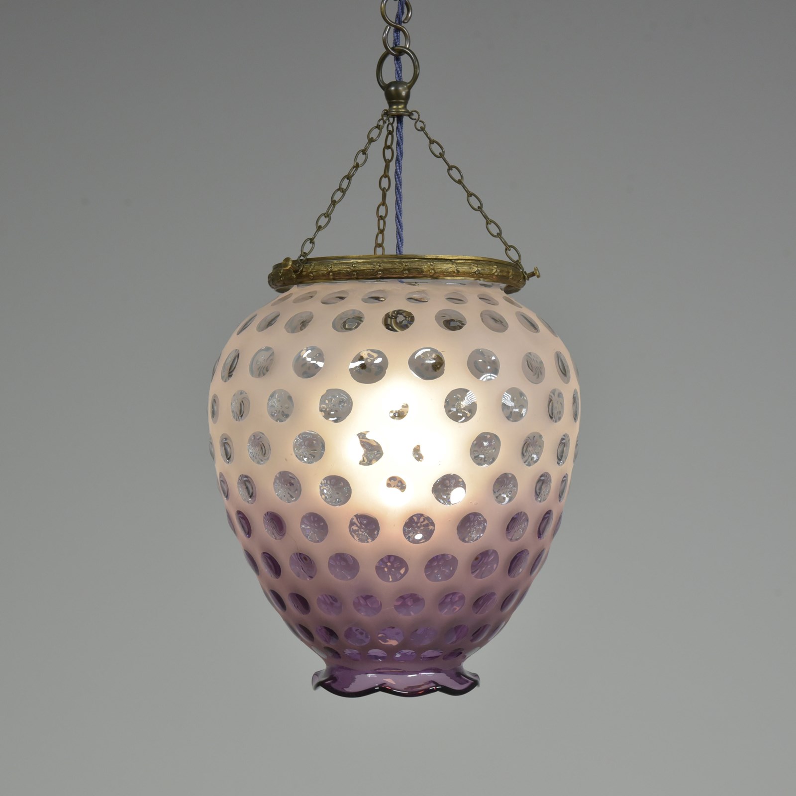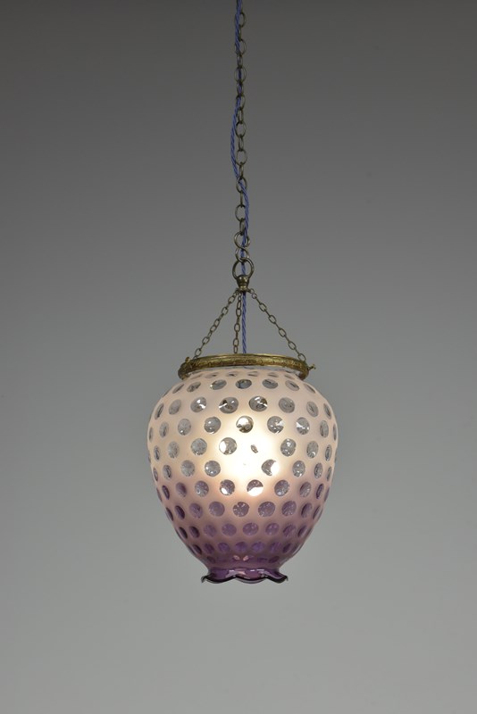 A dimpled violet glass lantern / pendant light. Approx mid century. Murano?