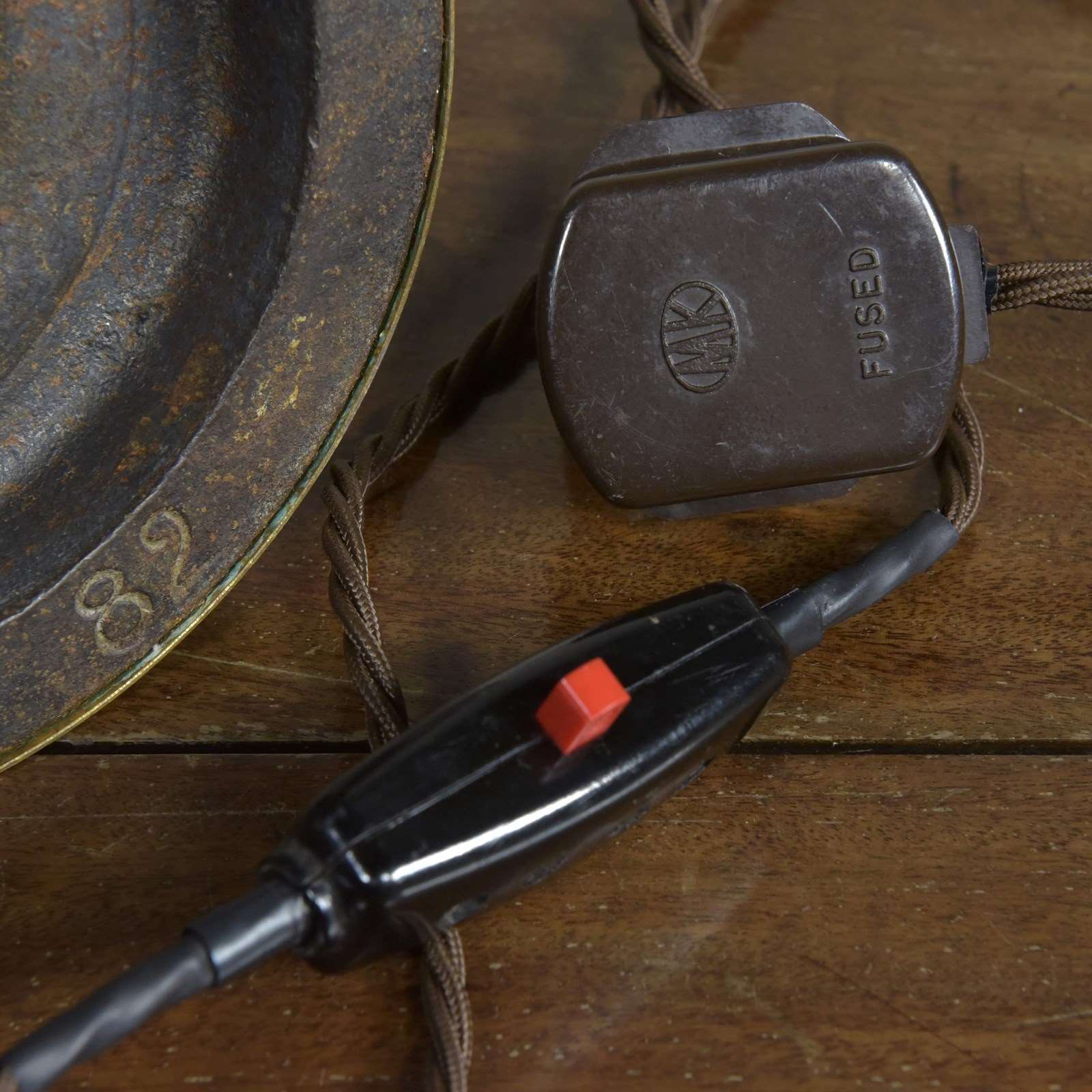 This one retains it's original in-line switch and phenolic plug. 1.6m exposed fabric flex. Pat tested.