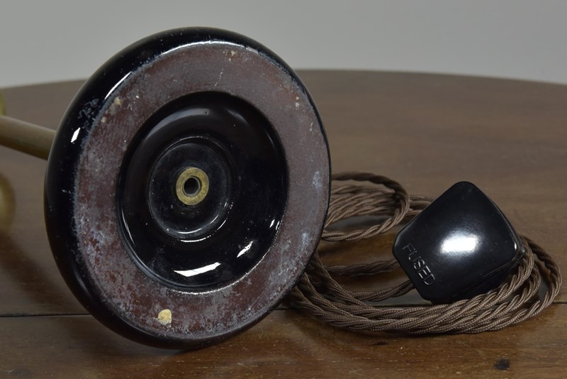Rewired with 2.5m fabric flex, patinated safety-switched lampholder, 3amp traditional phenolic plug. Pat tested.