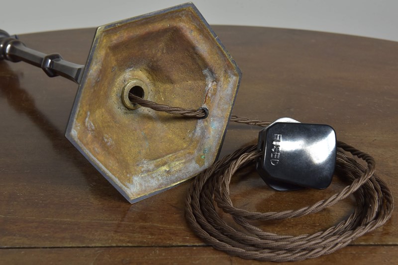 Rewired with 2.5m fabric flex,bronze patinated safety-switched lampholder, 3amp traditional phenolic plug. Pat tested.