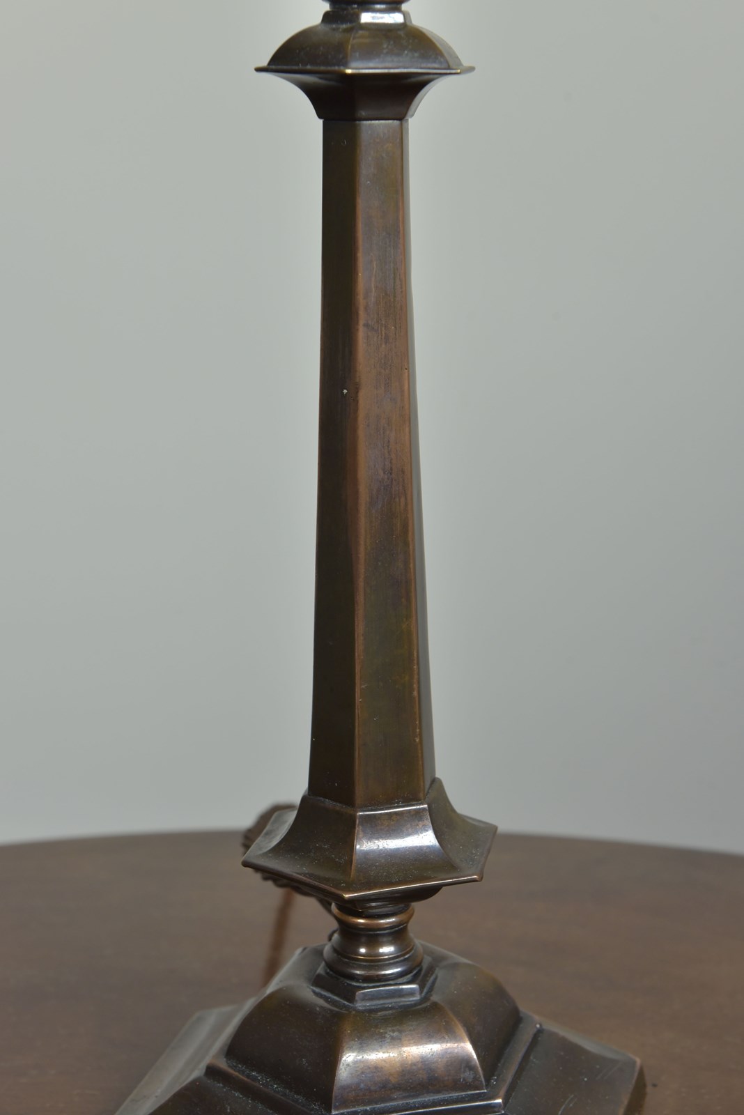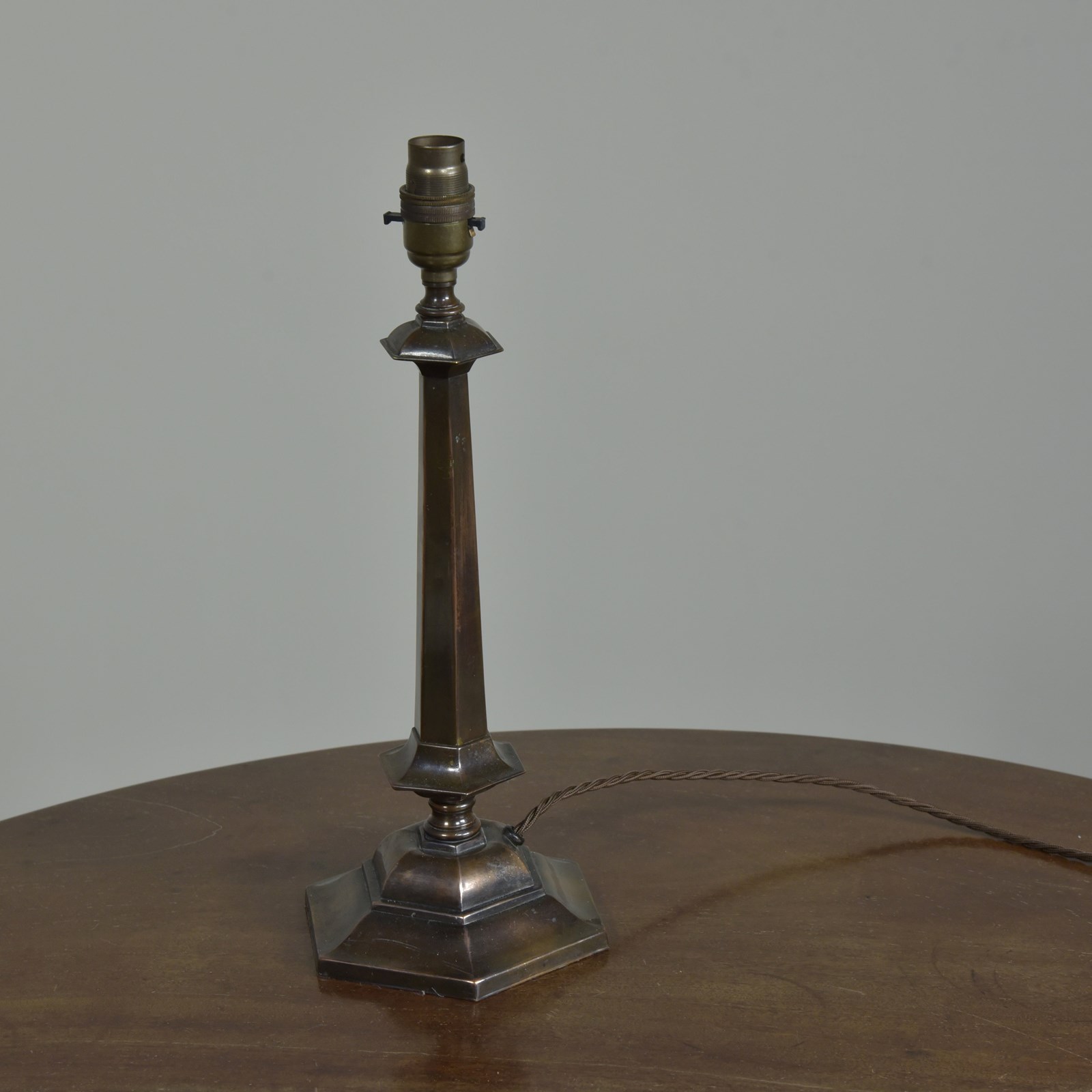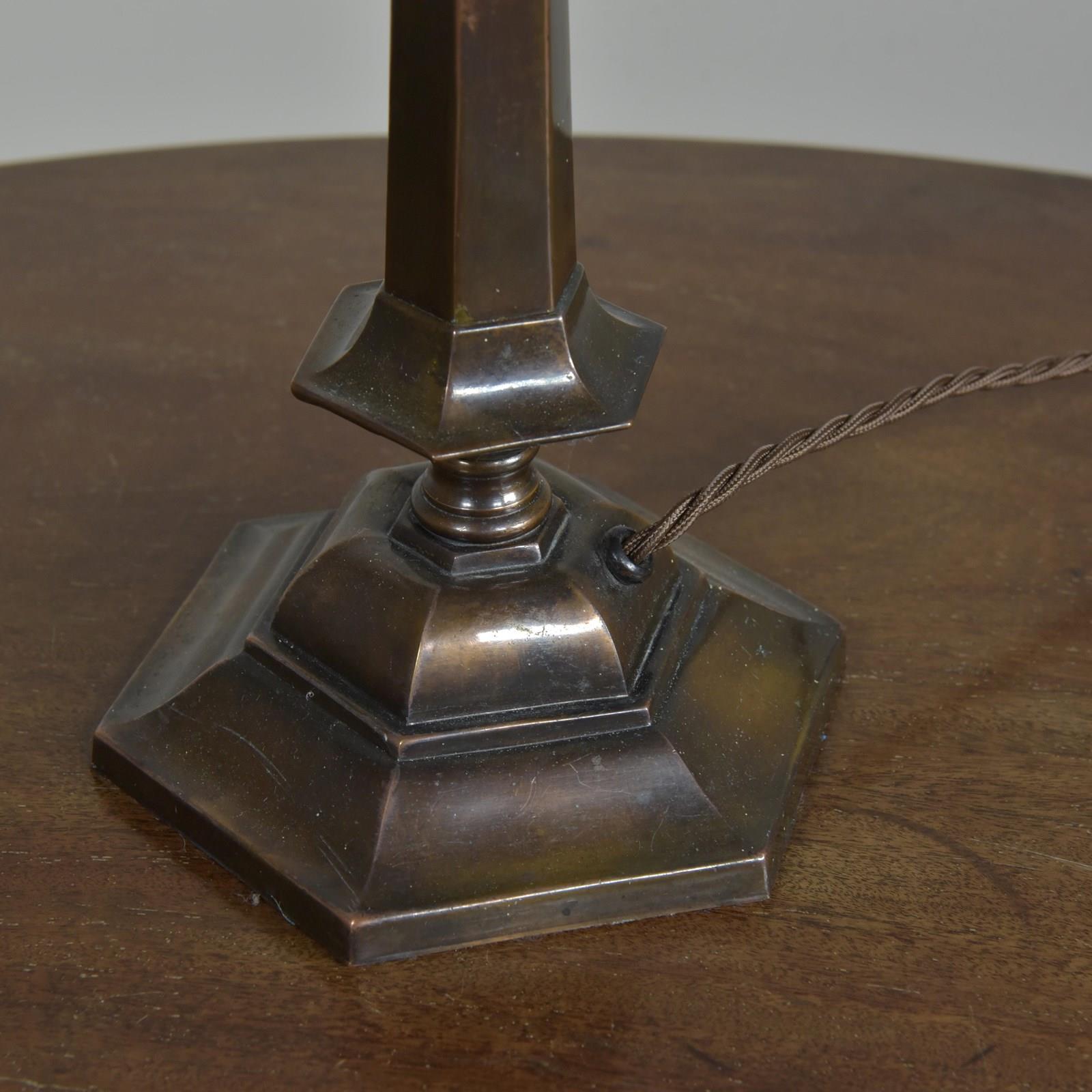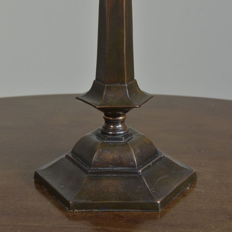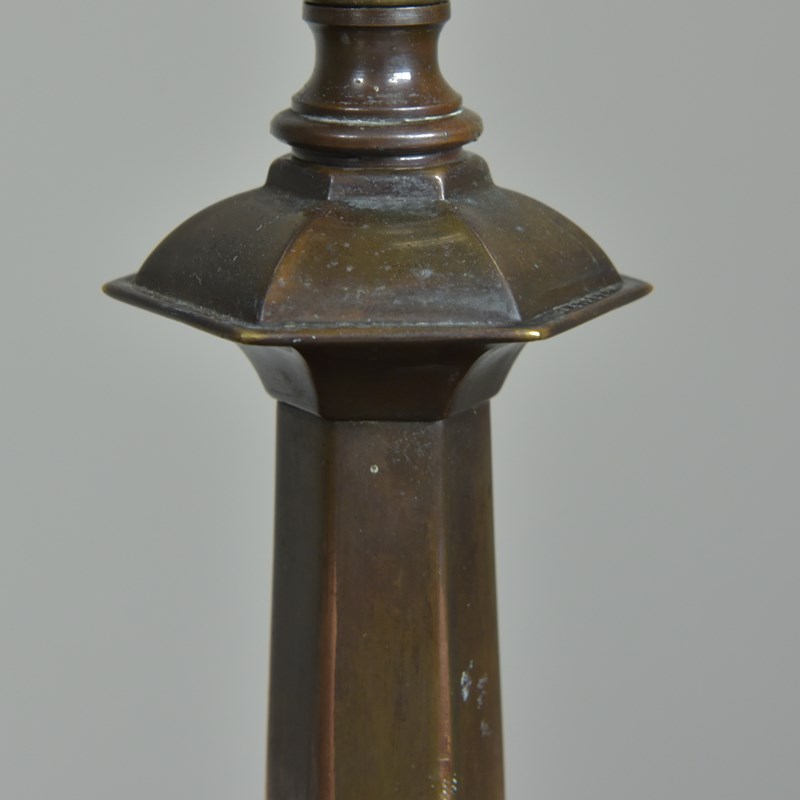 A good hexagonal brass lamp with exceptional original colour / patination. English, 1910.