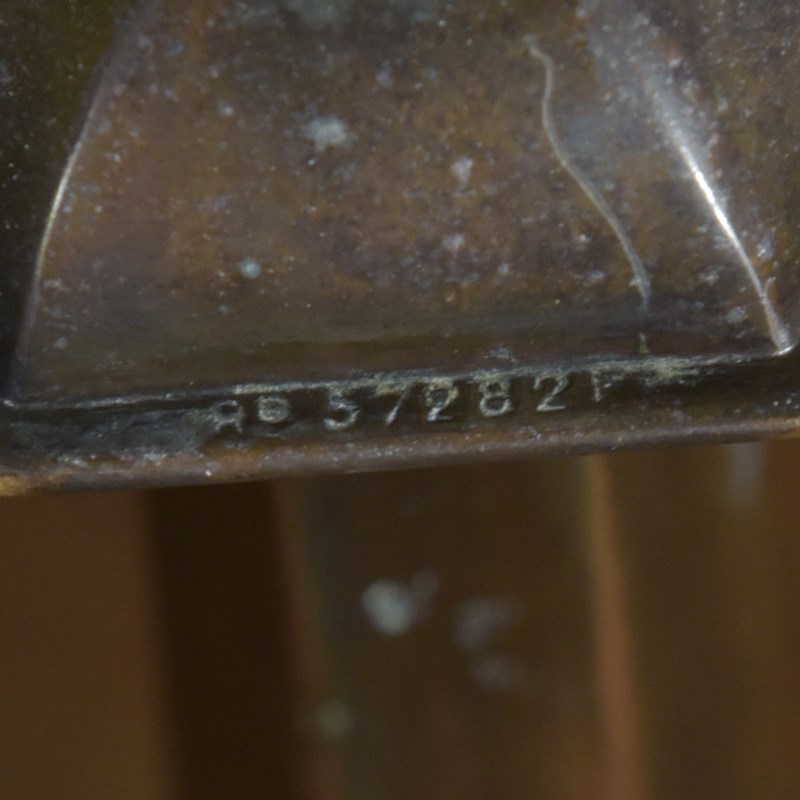 Stamped with it's registered design number 572821 dating it to 1910. A trip to Kew Gardens would be needed to ascertain the maker etc.