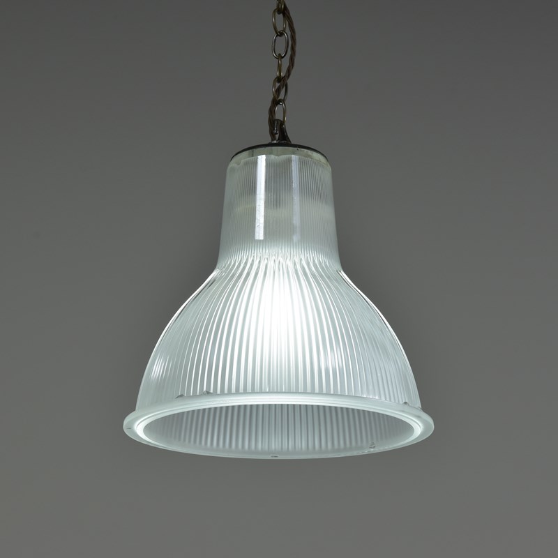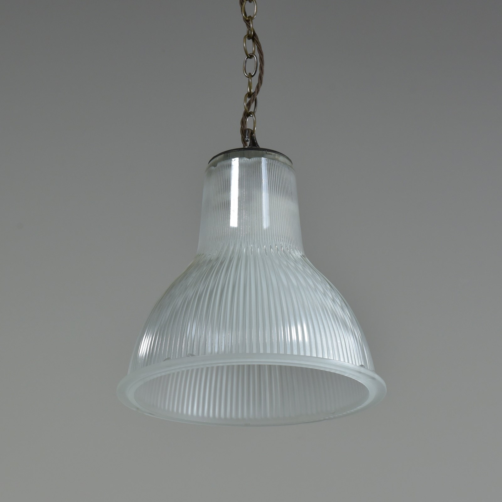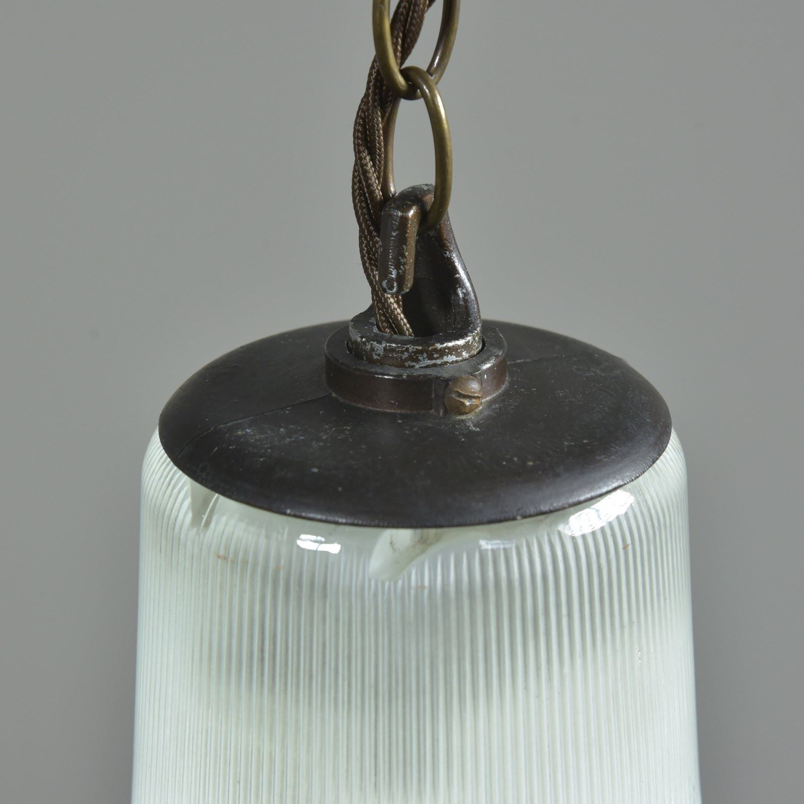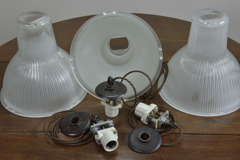 A set of 5 antique Holophane prismatic glass shades with original fittings. English c1940s.