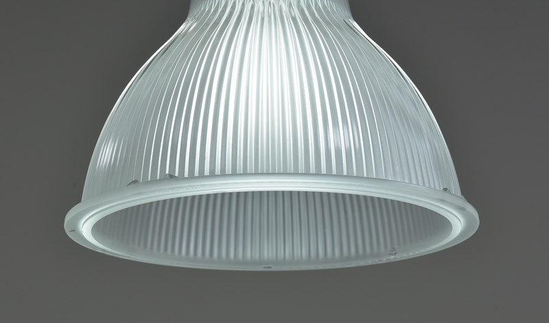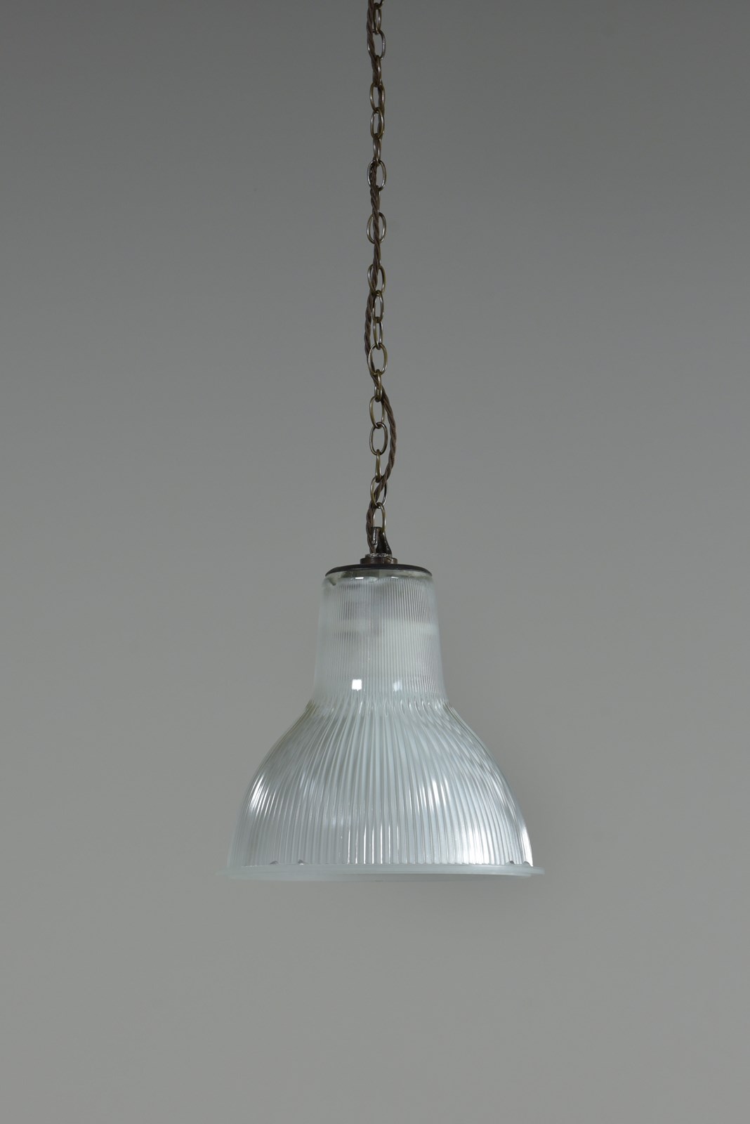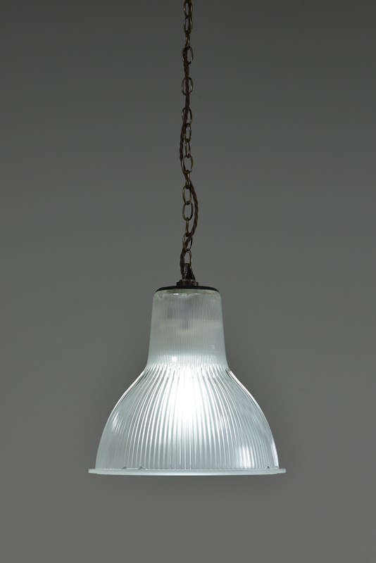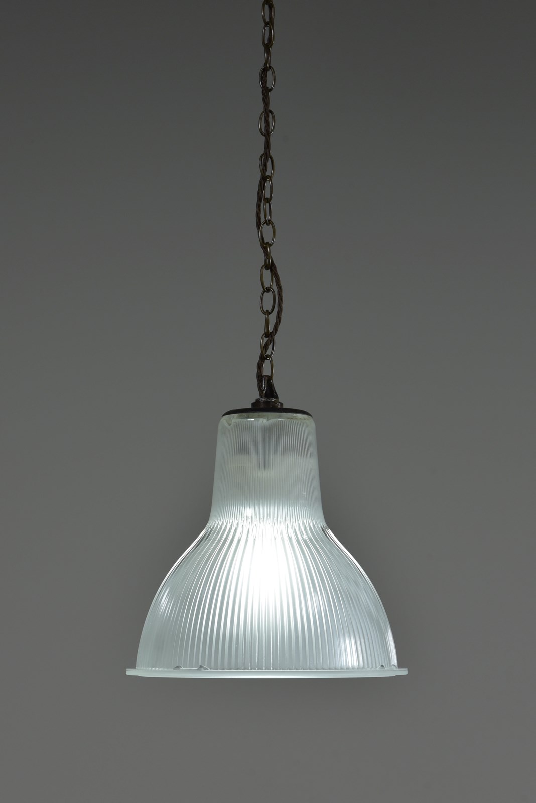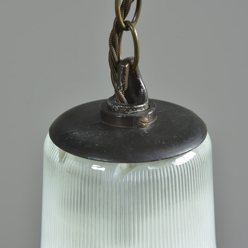 A set of 5 antique Holophane prismatic glass shades with original fittings. English c1940s.