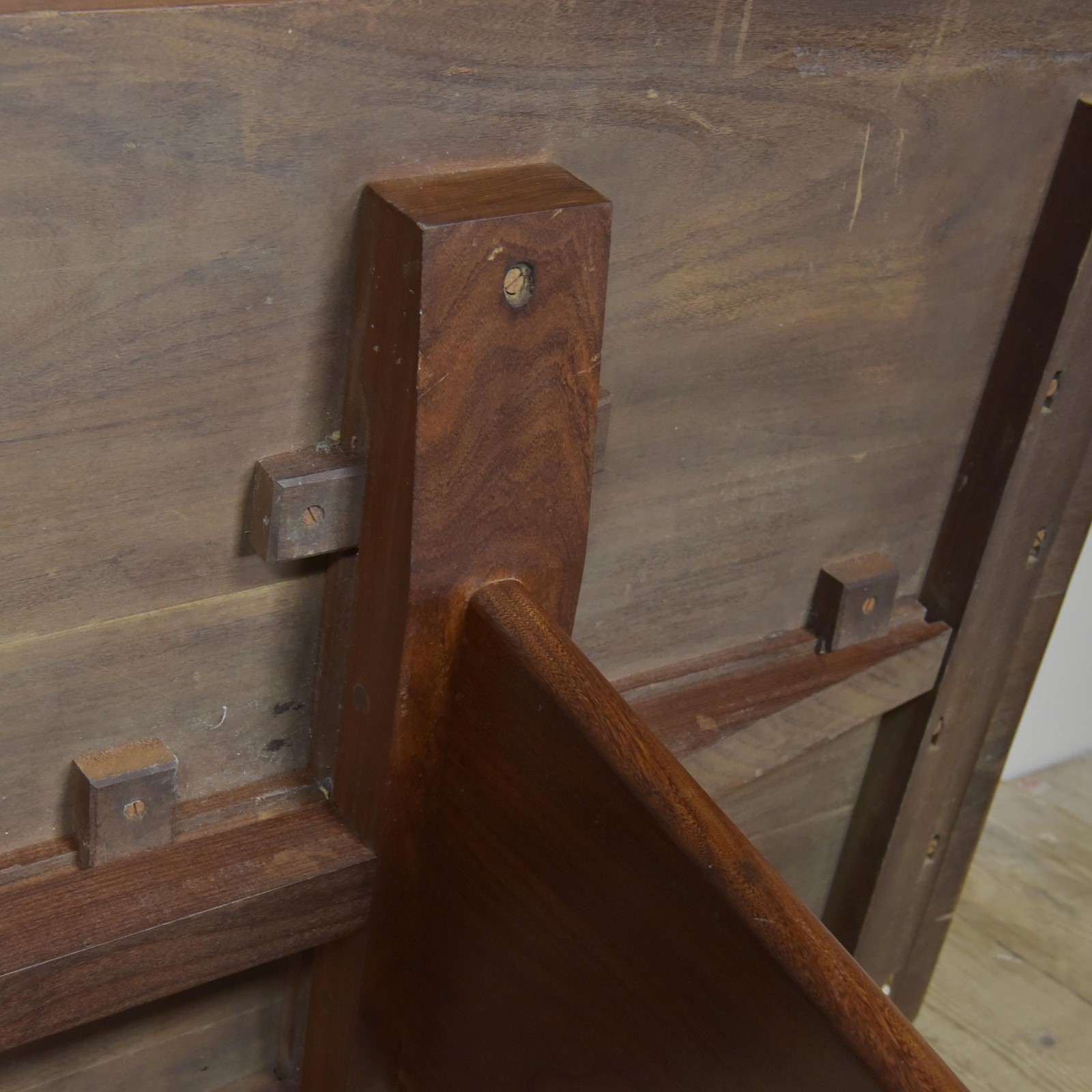 A large antique hardwood american black walnut trestle / refectory / dining table. One of several similar tables ex Kings College, Cambridge University. English c1940. Simple modernist design, rock solid, sturdy and heavy in a premium hardwood. This would be an incredibly expensive table to make now. Cleaned and waxed. Dimensions in inches/cms; 96"/244cm x 33.25"/84.5cm x 20/74cm height (dining or desk height). Top is 1.4"/3.5cm thick. More than one available. Priced individually.