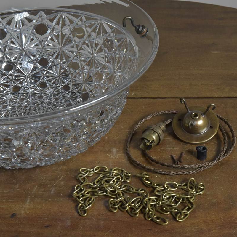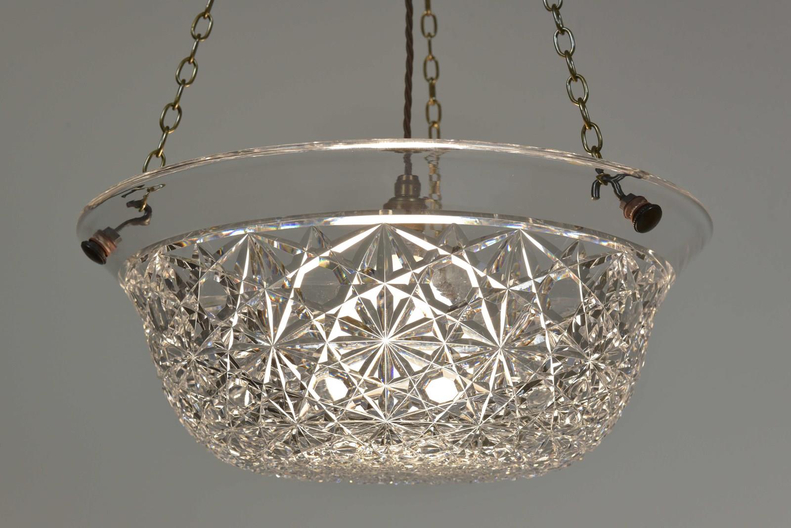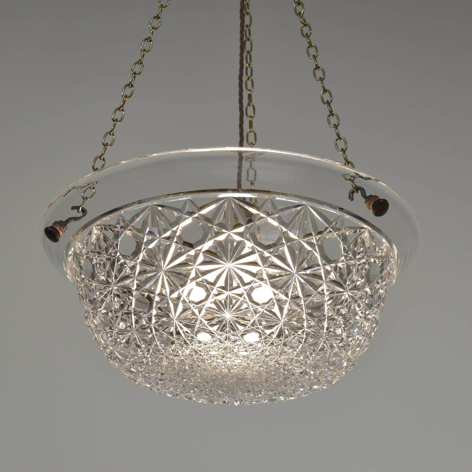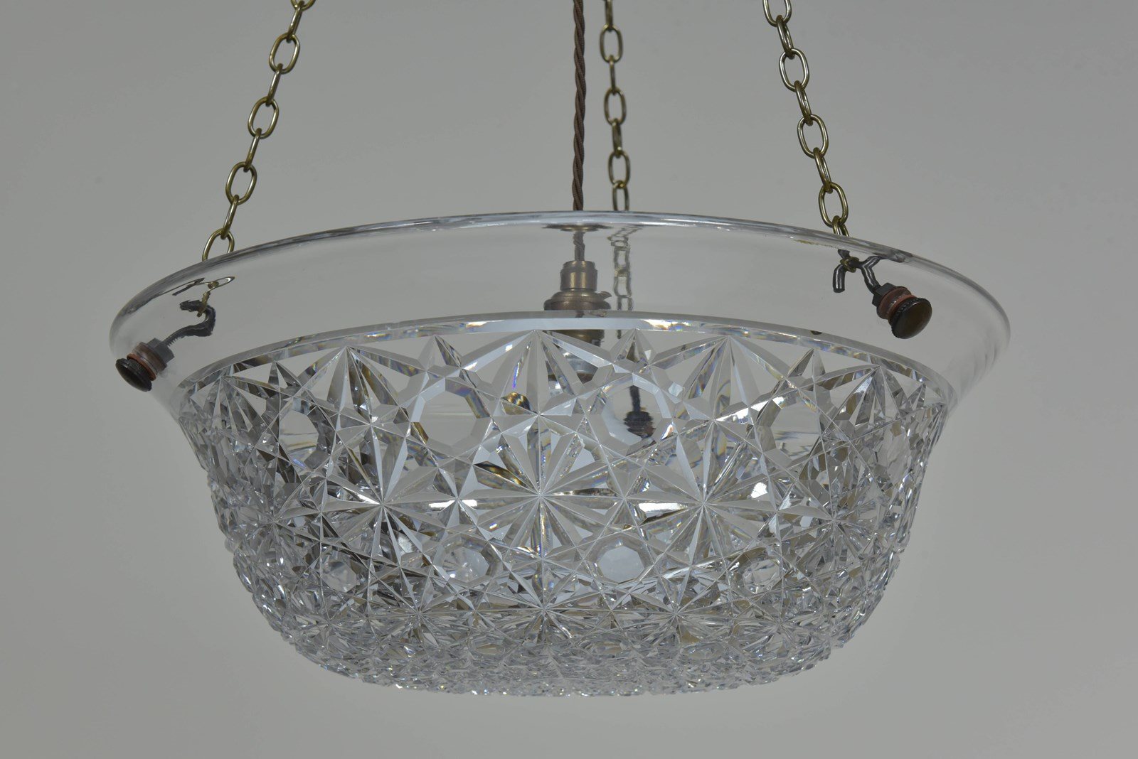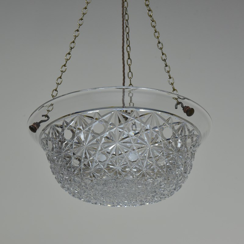 A large (40.5cm diameter) and heavy (7kg) cut crystal glass plafonnier. English, c1930.