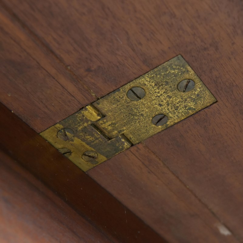 Alterations; maybe a marriage, originally the top (probably earlier) tilted ( see brass mechanism). Quality timbers. Approx mid century and earlier.