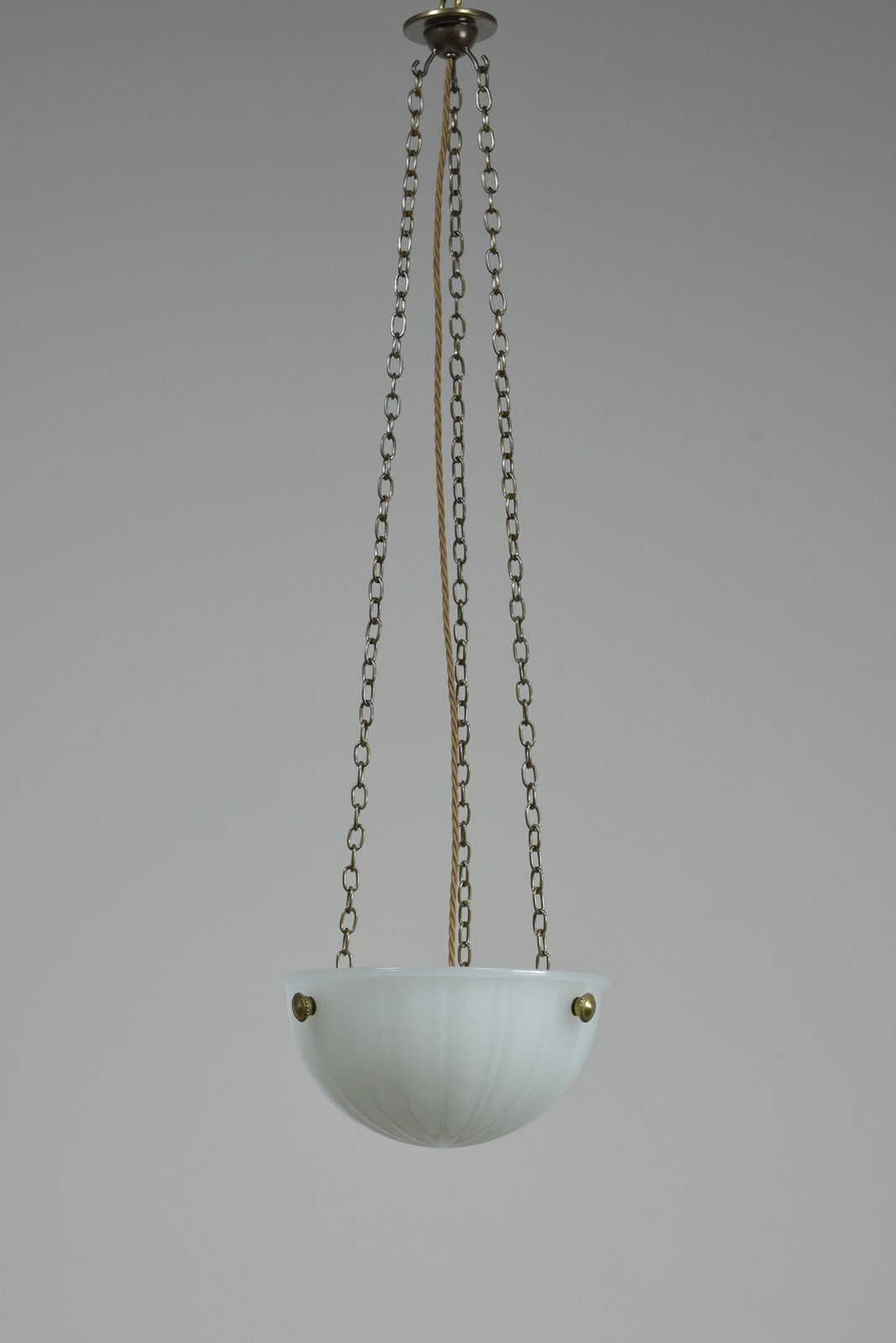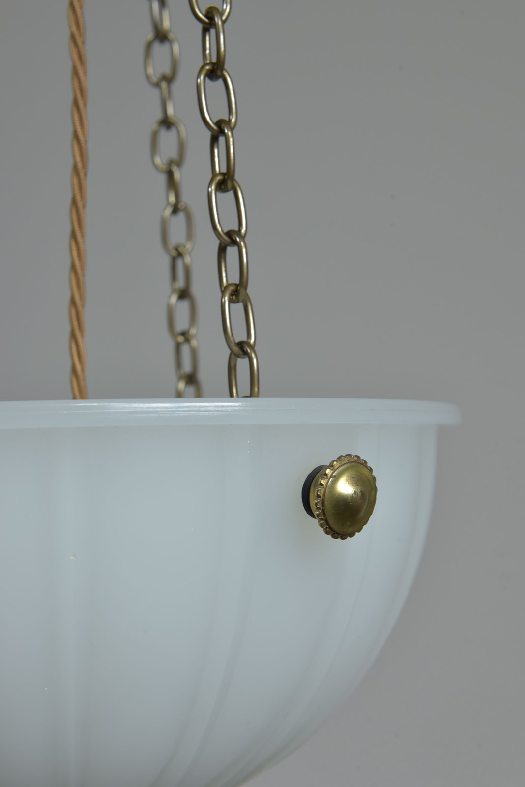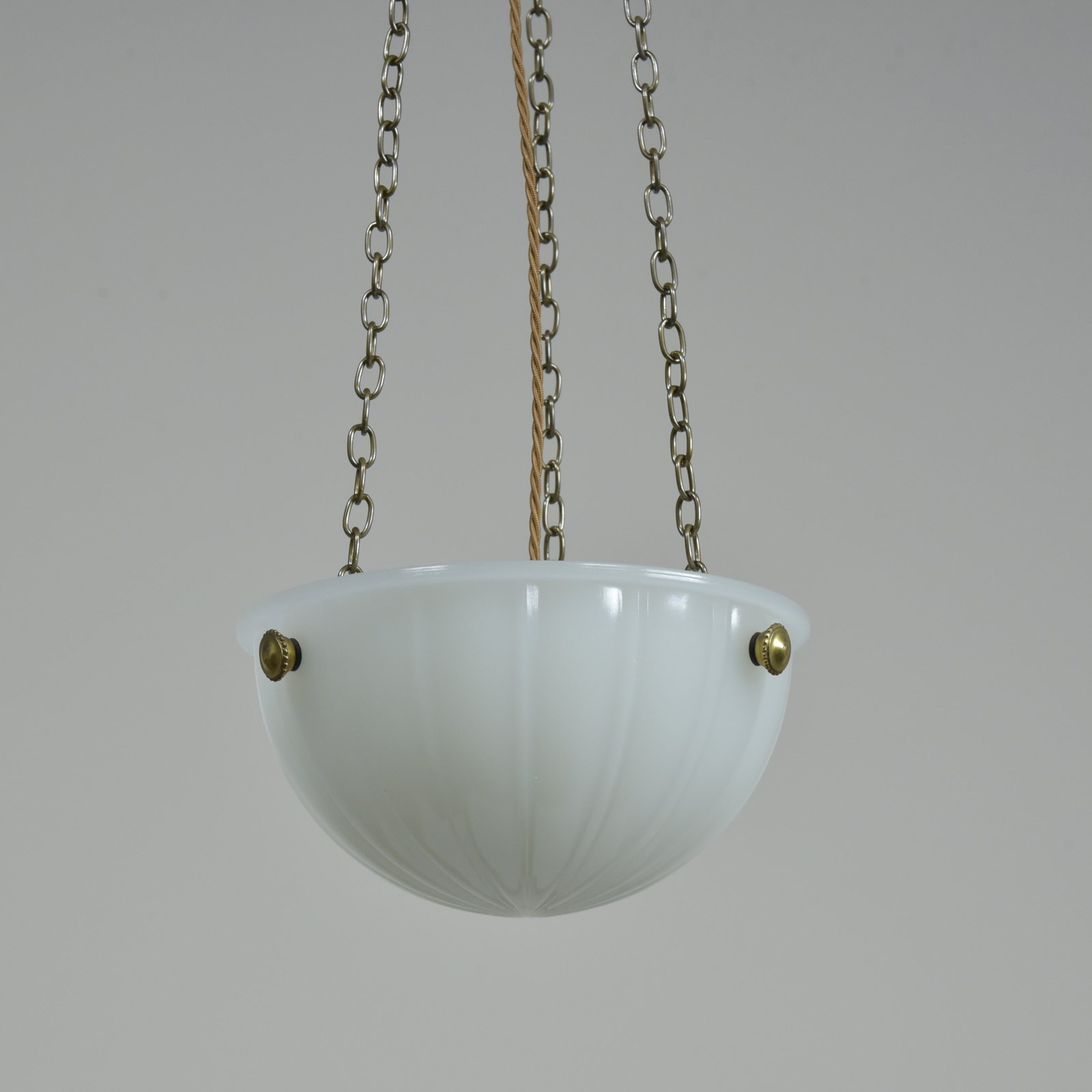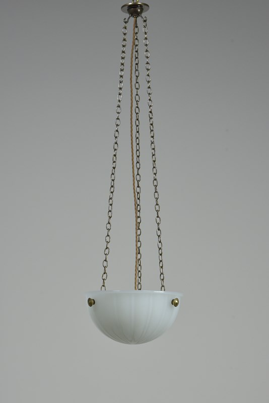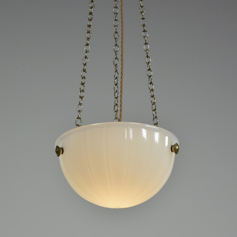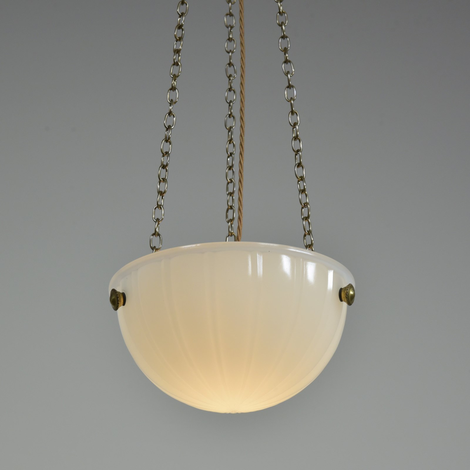An antique moonstone bowl plafonnier / hanging light. English c1920.