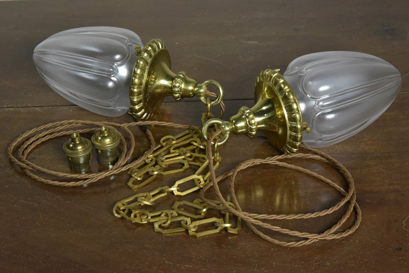 Excellent condition and quality. Each rewired with 1.5m fabric flex and new brass BC lampholders (the original early Ediswan lampholders replaced but shown in one of the images).