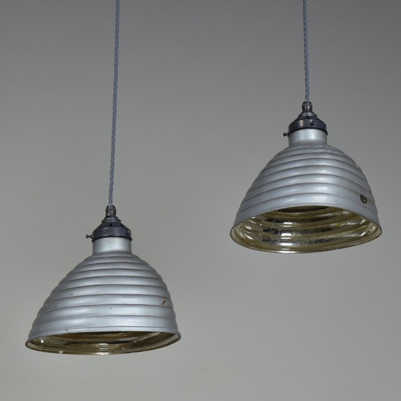 Pair Beehive Silvered / Mirrored Pendant Shades