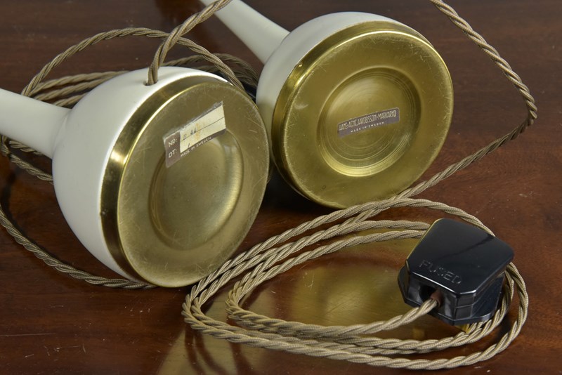 These have been carefully cleaned, waxed (museum microcrystalline wax), and rewired with 2.5m fabric flex, patinated brass safety-switched lampholder and traditional phenolic plug. Pat tested.