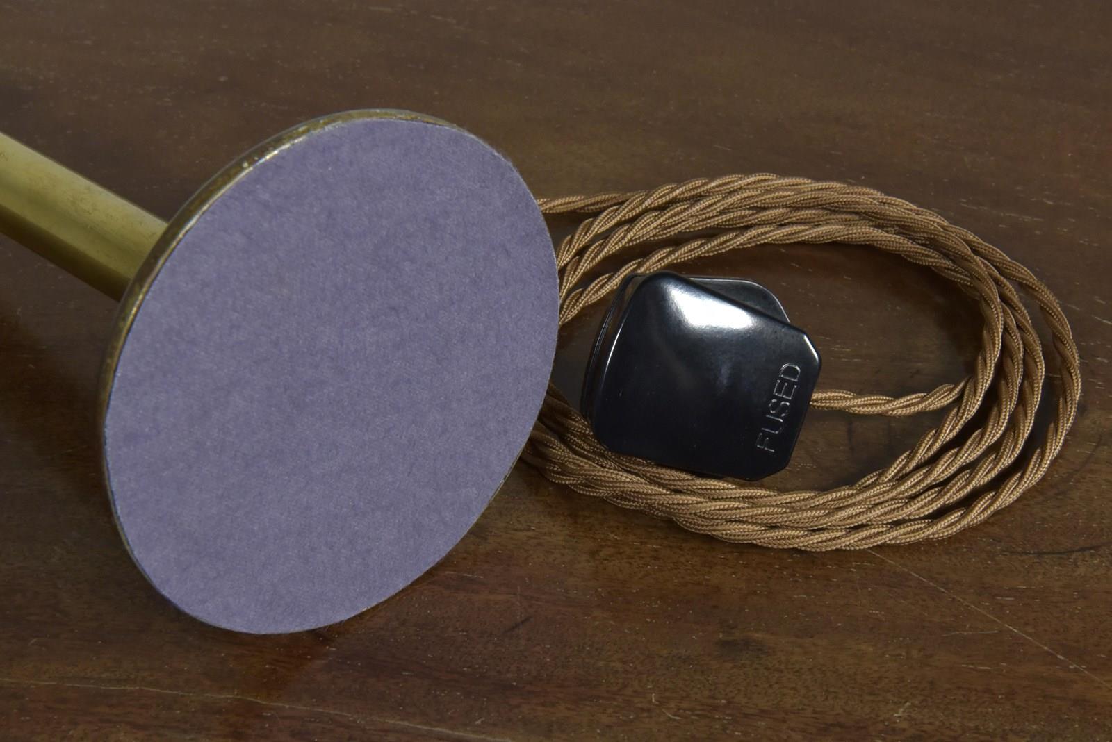 Cleaned, lightly polished, rewired with 2.25m fabric flex,patinated safety-switched lampholder, 3amp traditional phenolic plug. New fabric base. Pat tested.