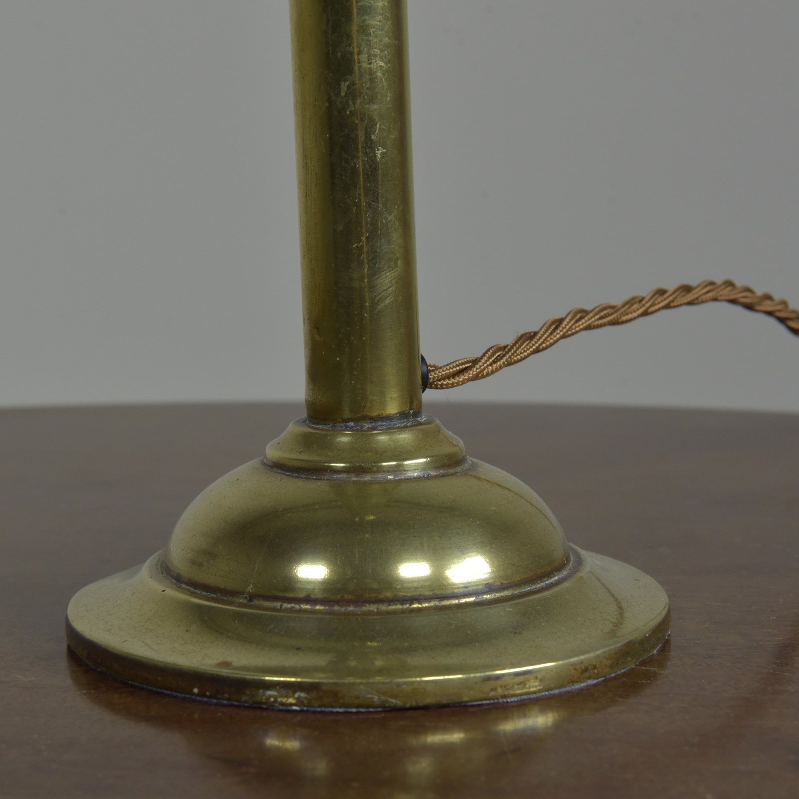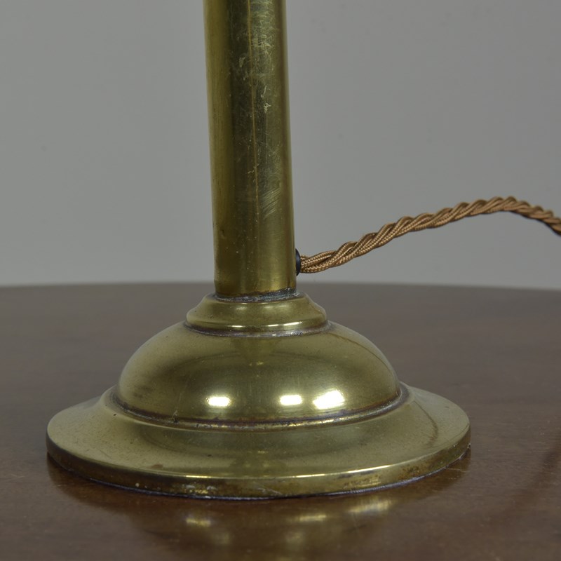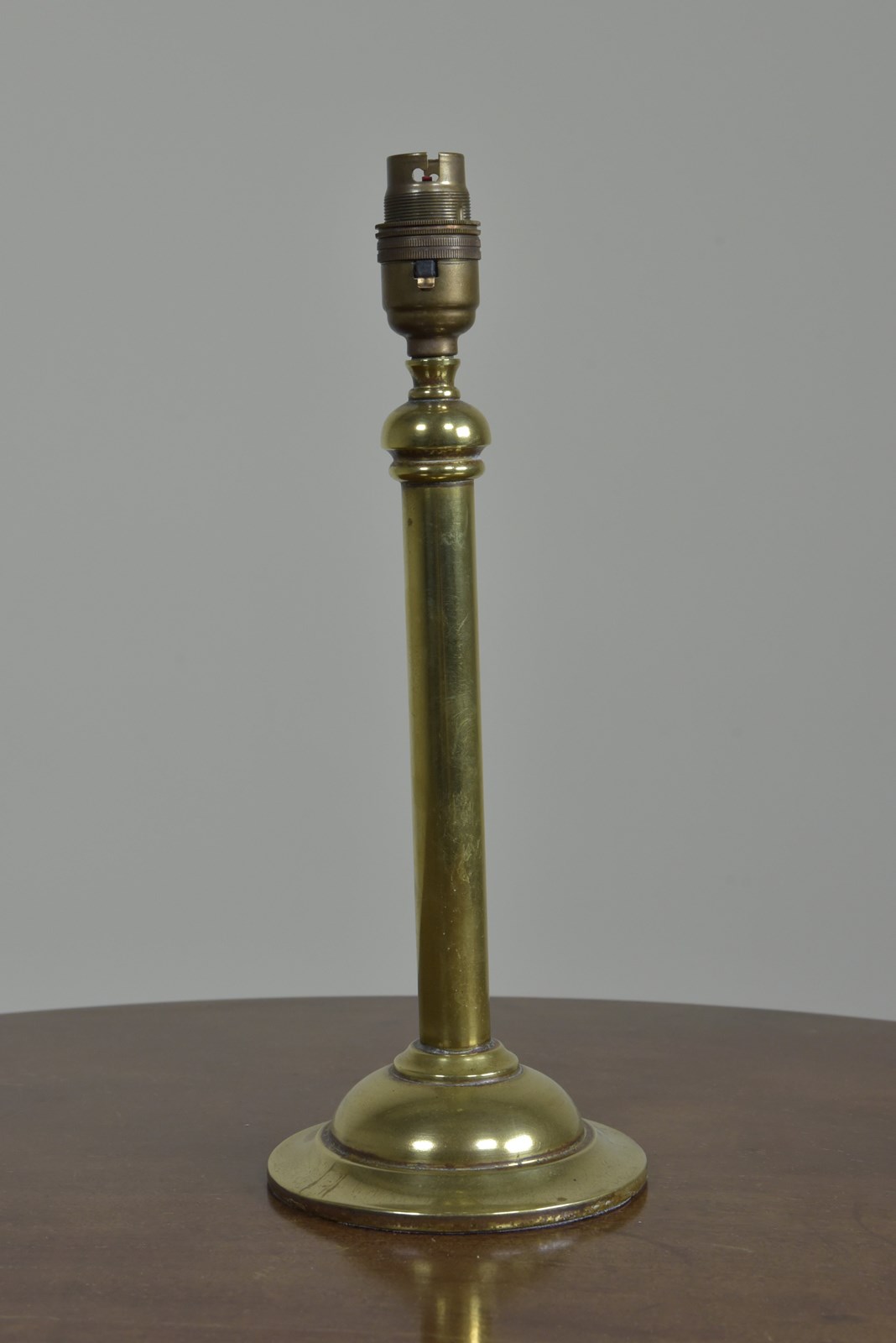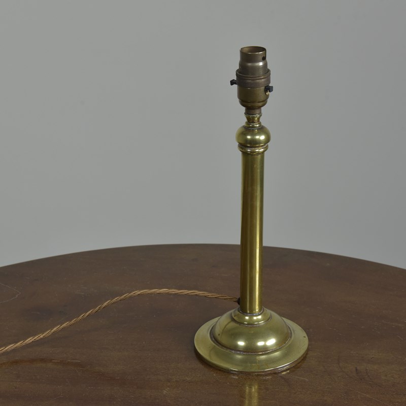 A simple antique brass table lamp by GEC with circular base (cast iron weighted). English 1925-1950 approx.