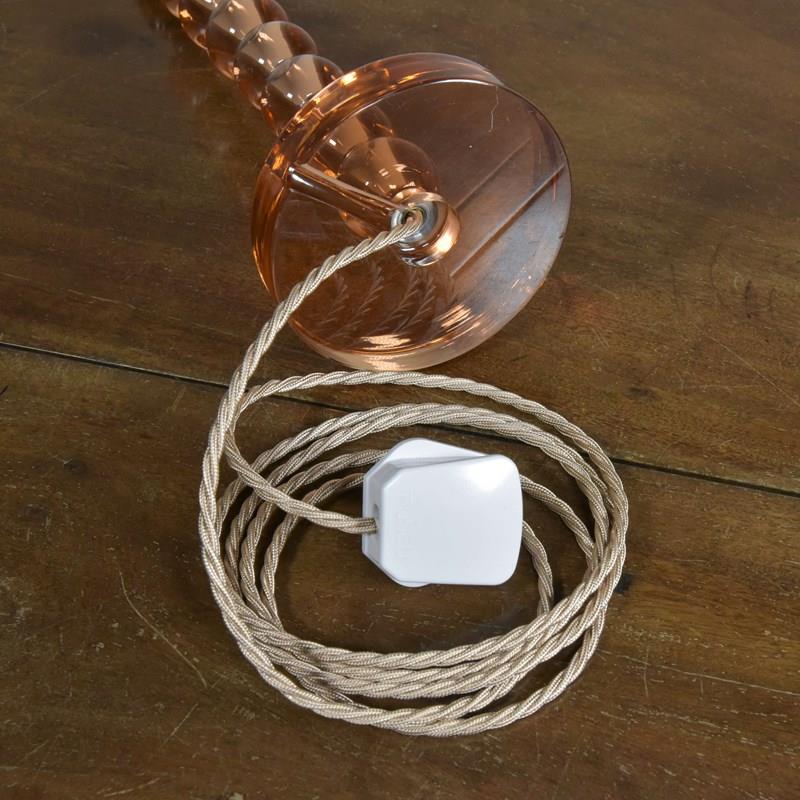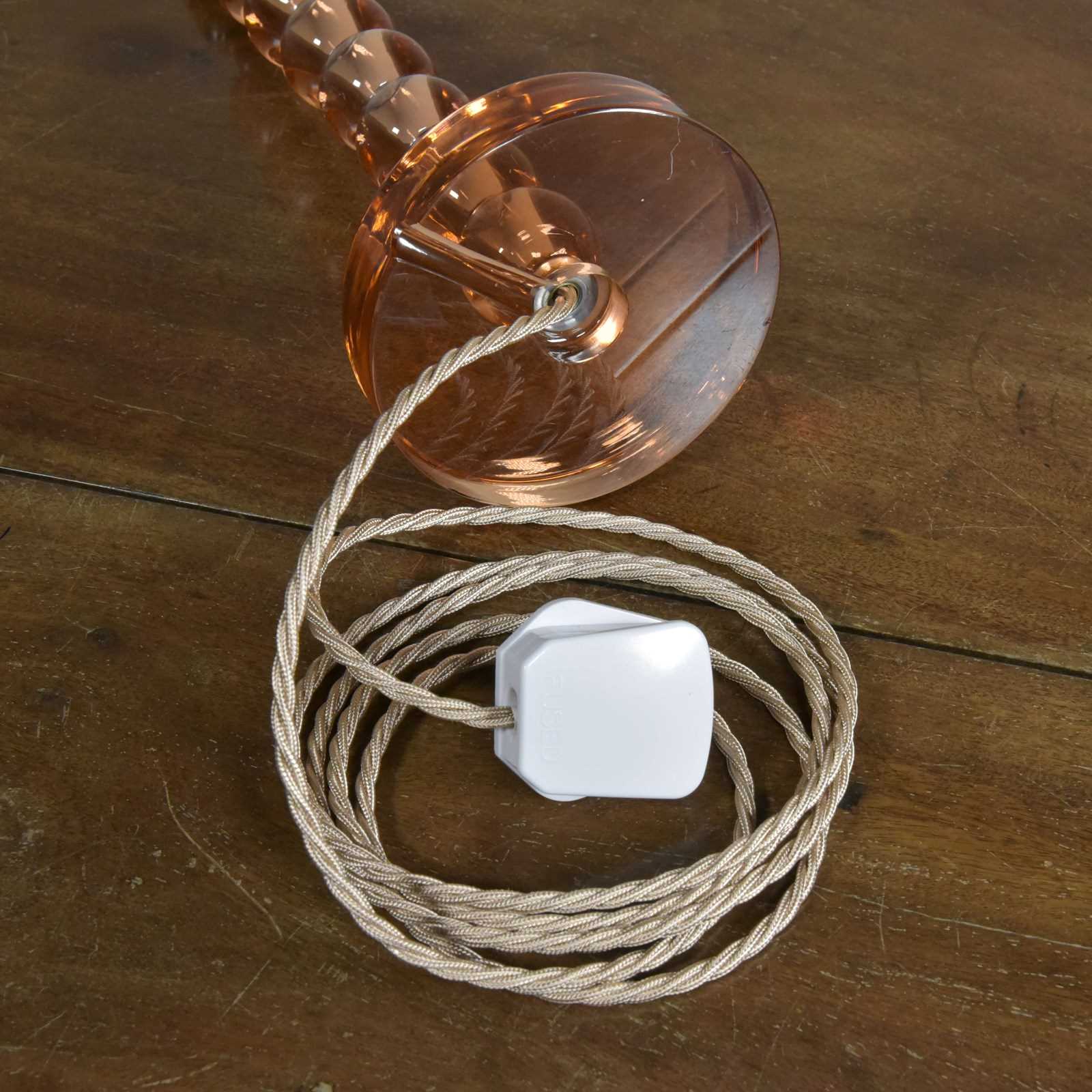 Rewired with 2.5 meters of fabric flex, a new patinated brass switched lampholder and a traditional style hard plastic plug. Pat tested.