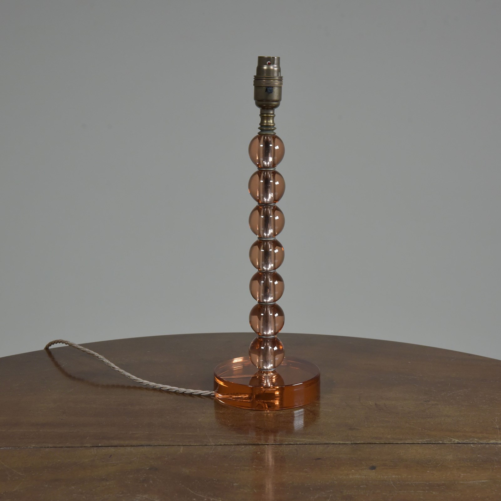 An antique stacked glass ball table lamp with circular glass disc base and faded nickel plated brass fittings. c1920/30s.
