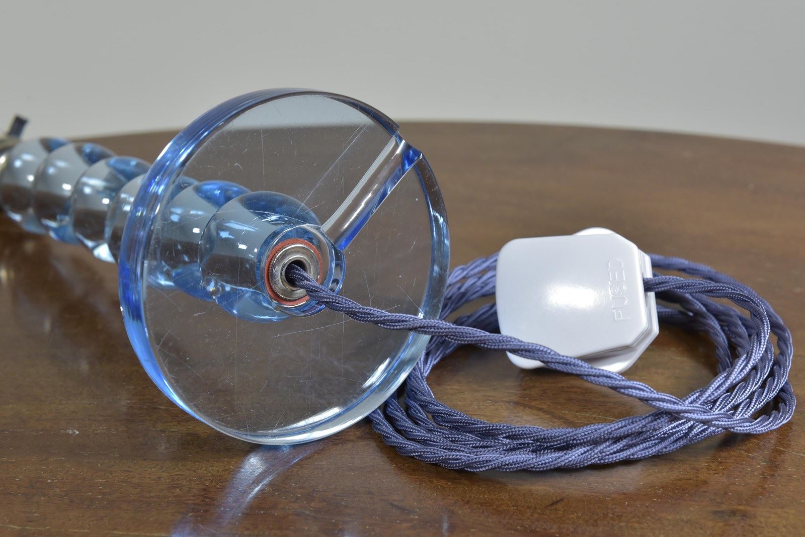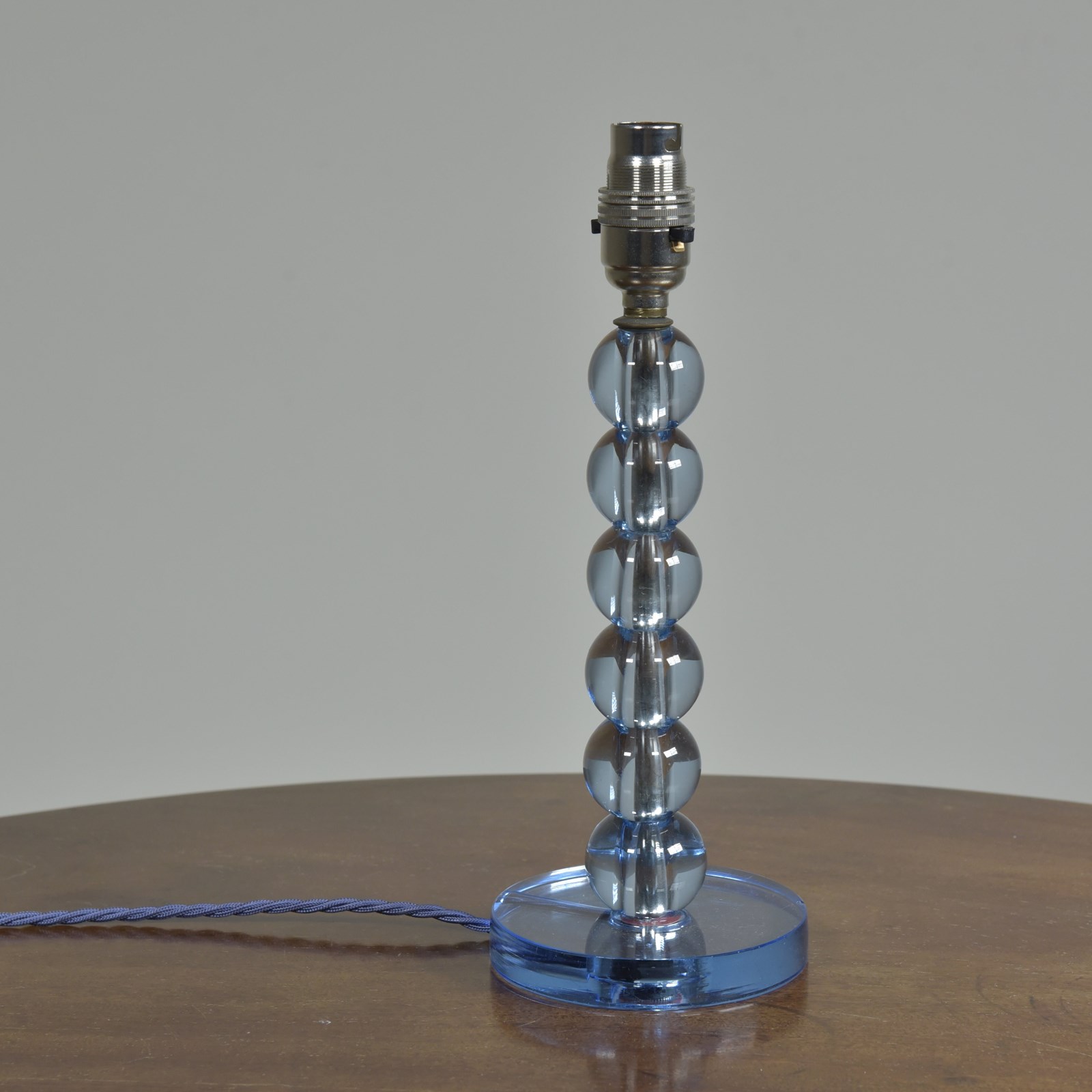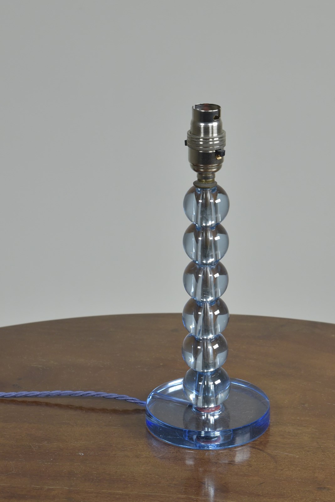 An antique Art Deco stacked blue glass ball lamp with glass disc base. English 1920s-30s.